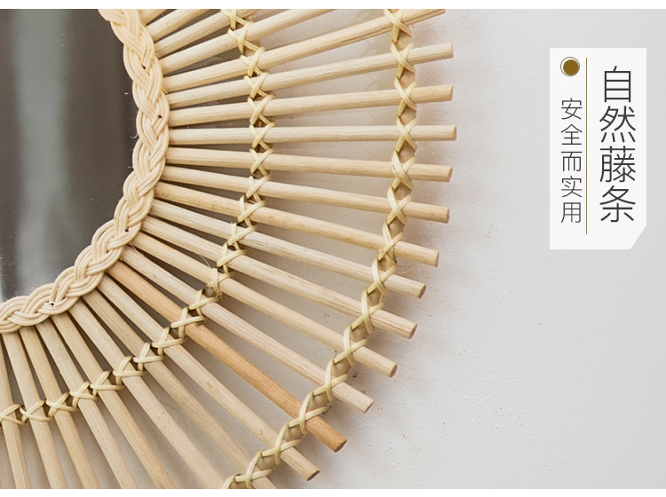 ins網紅北歐竹編裝飾鏡越南藤編掛墻編織圓鏡子民宿墻面藝術壁掛1入
