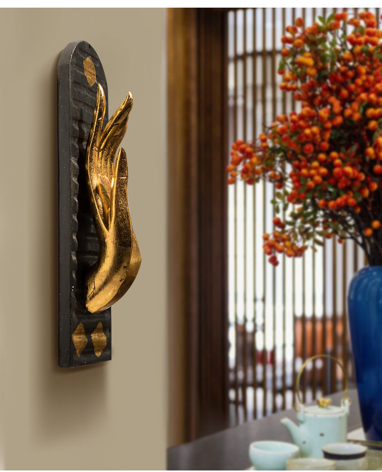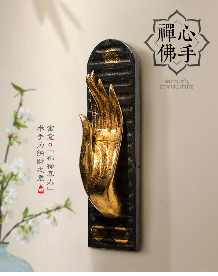 居家禪意墻飾風水客廳壁掛裝飾品墻上工藝品墻壁佛手掛件墻面掛飾1入