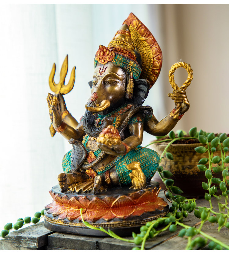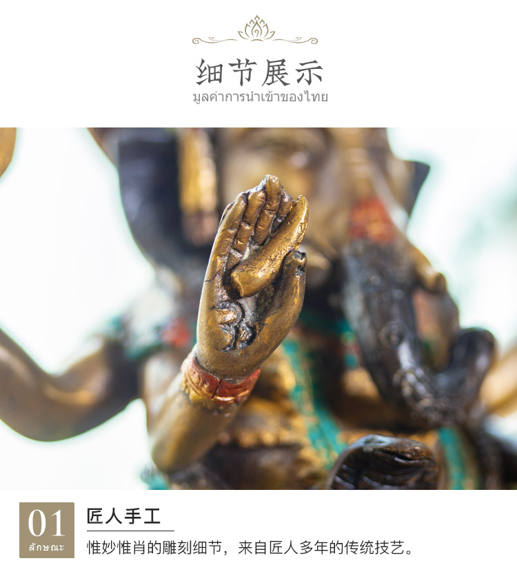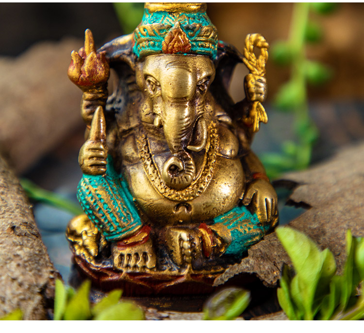 純銅泰國象神擺件印度象鼻財神佛像泰式客廳會所桌面招財裝飾品1入