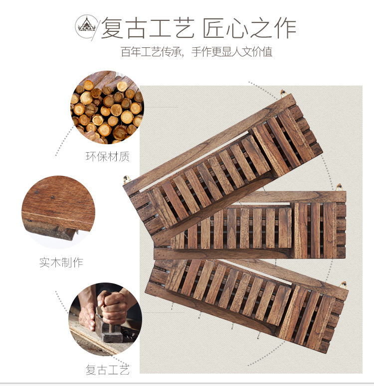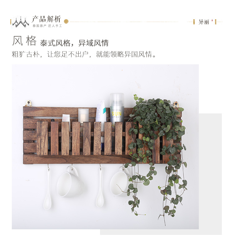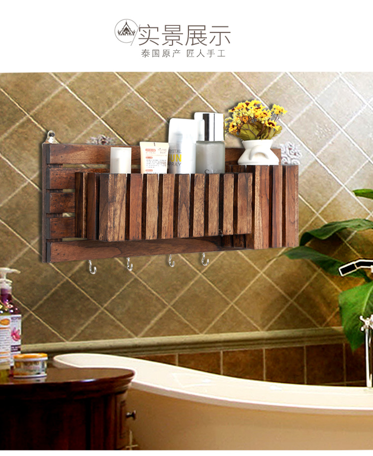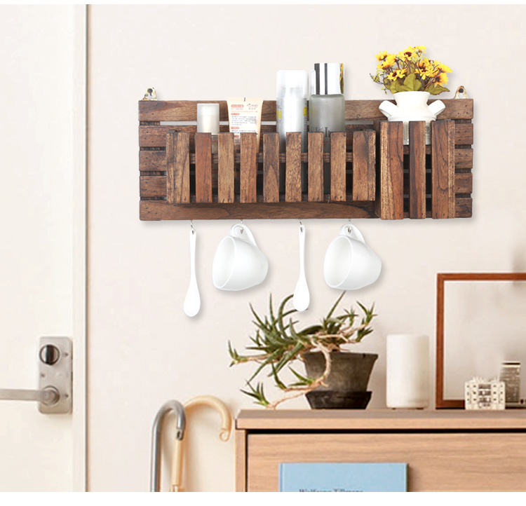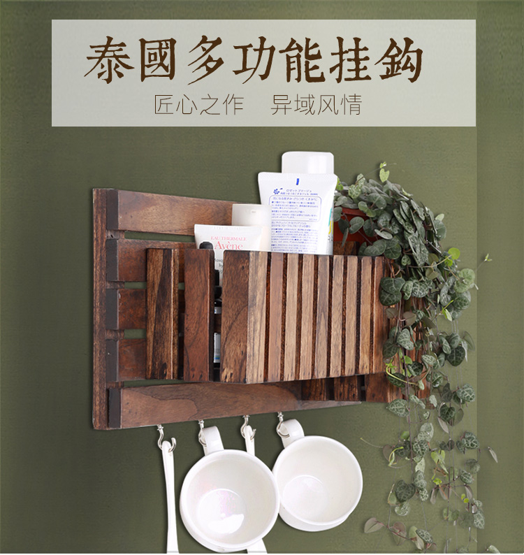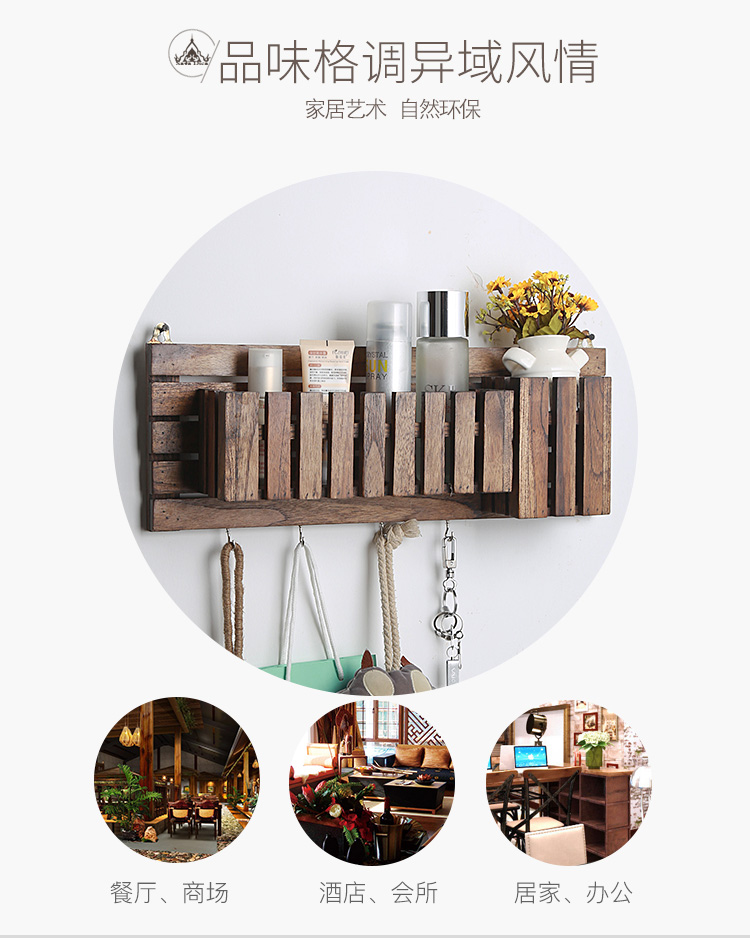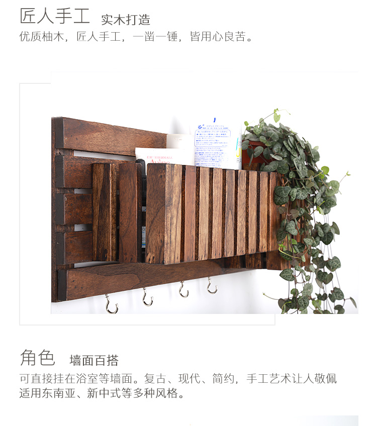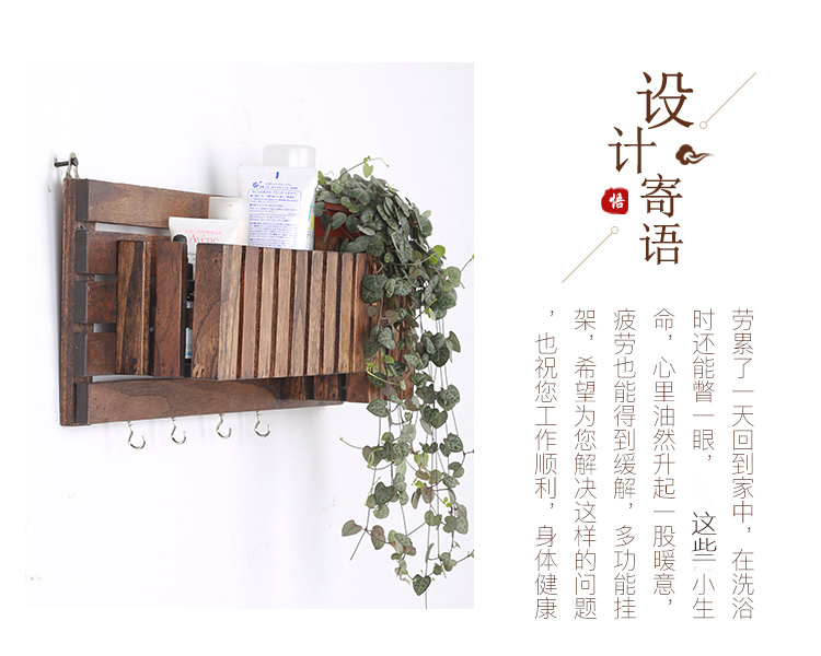 實木復古客廳裝飾墻上置物架廚房衛生間墻面木質收納架掛鉤1入