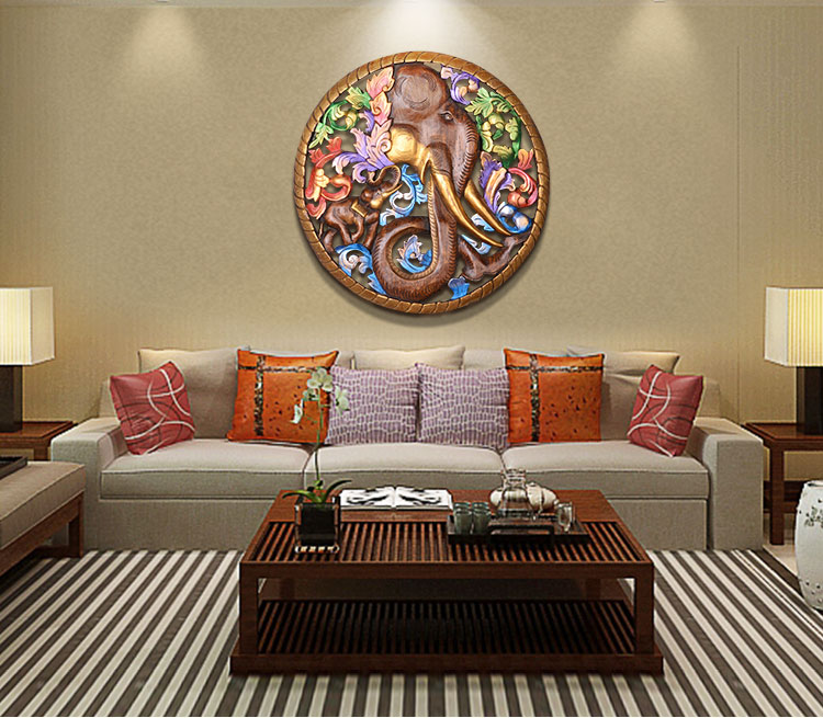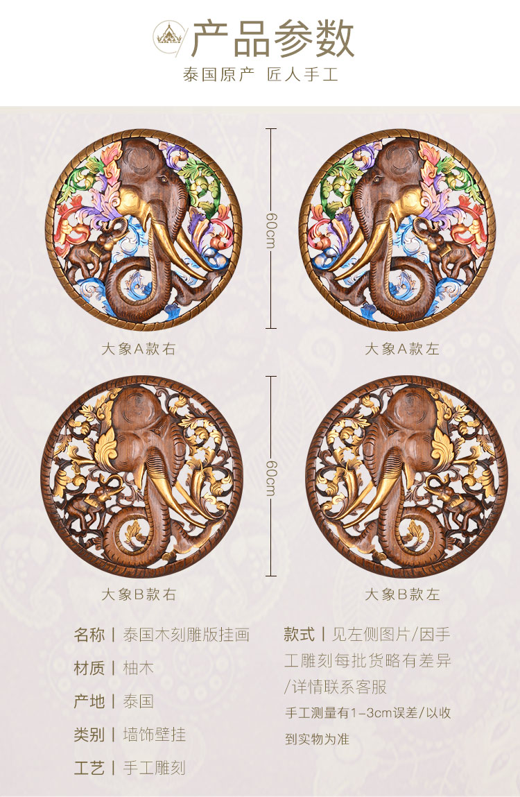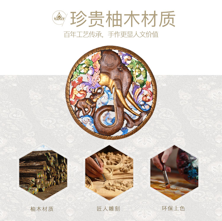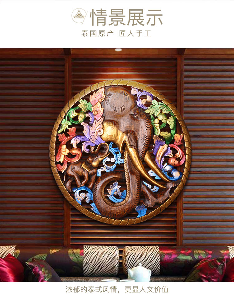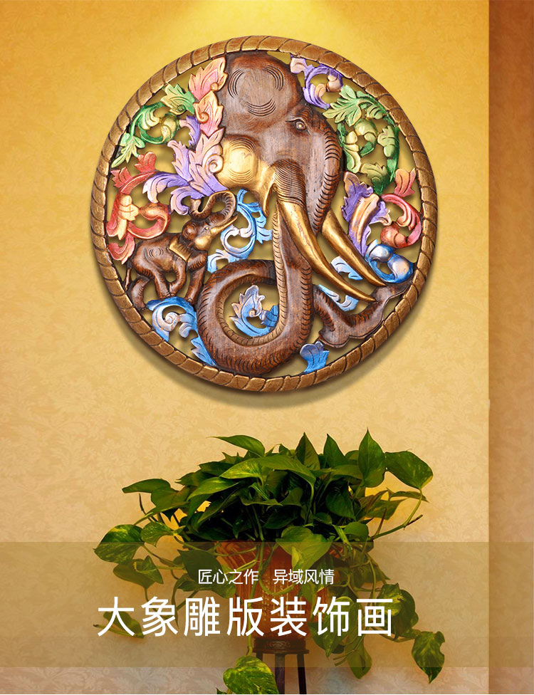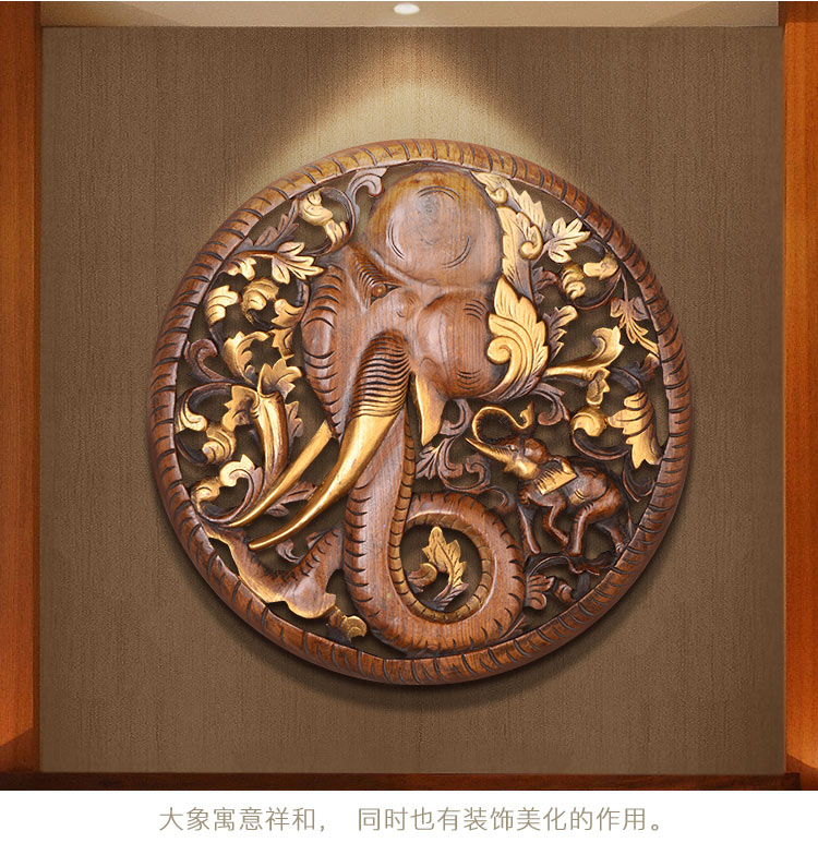 東南亞實木雕刻裝飾象雕板 泰式鏤空雕花客廳玄關壁掛 背景墻掛板1入
