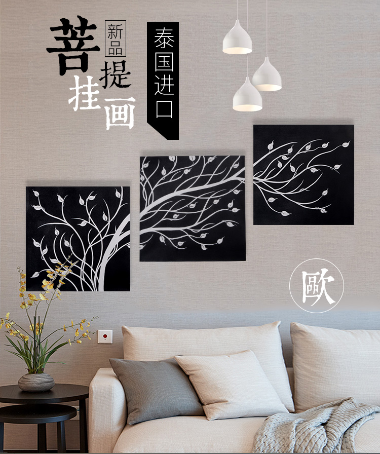【 雙十二半價】沙發背景墻掛畫菩提樹三聯掛畫現代餐廳臥室裝飾1入