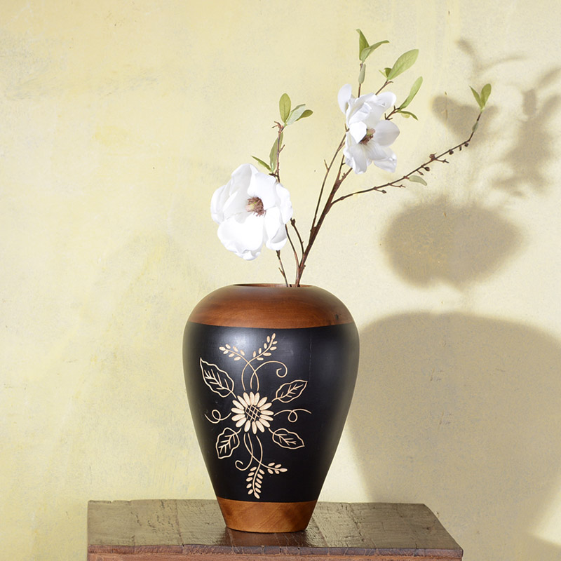 【 雙十二半價】實木花瓶客廳干花假花花瓶新古典桌面花瓶擺件1入