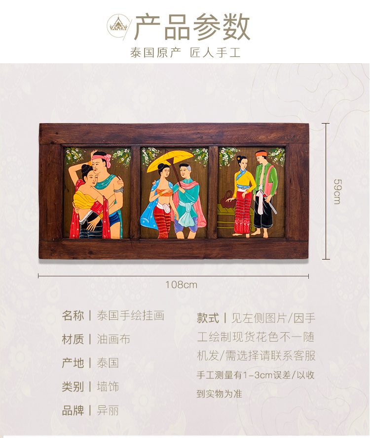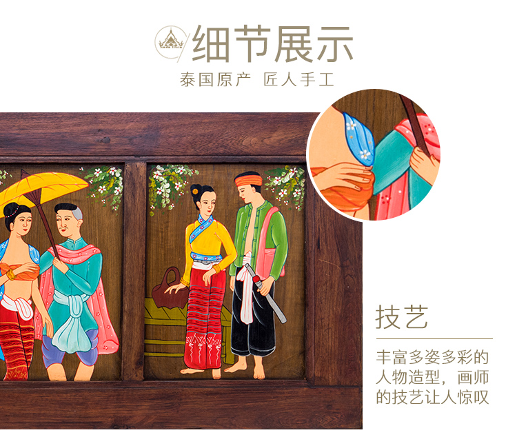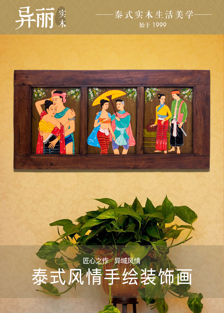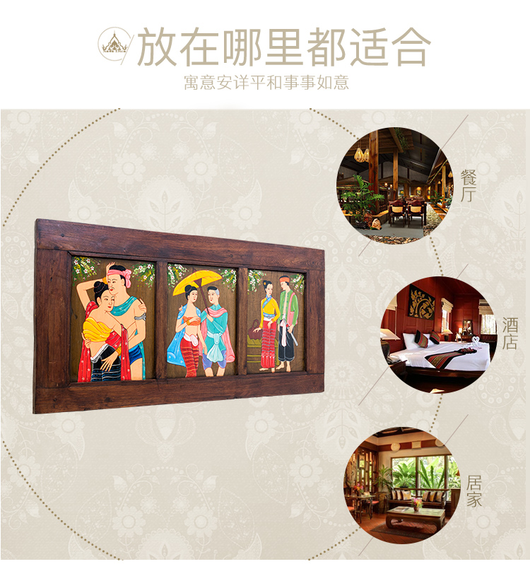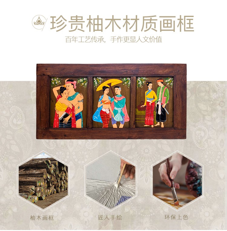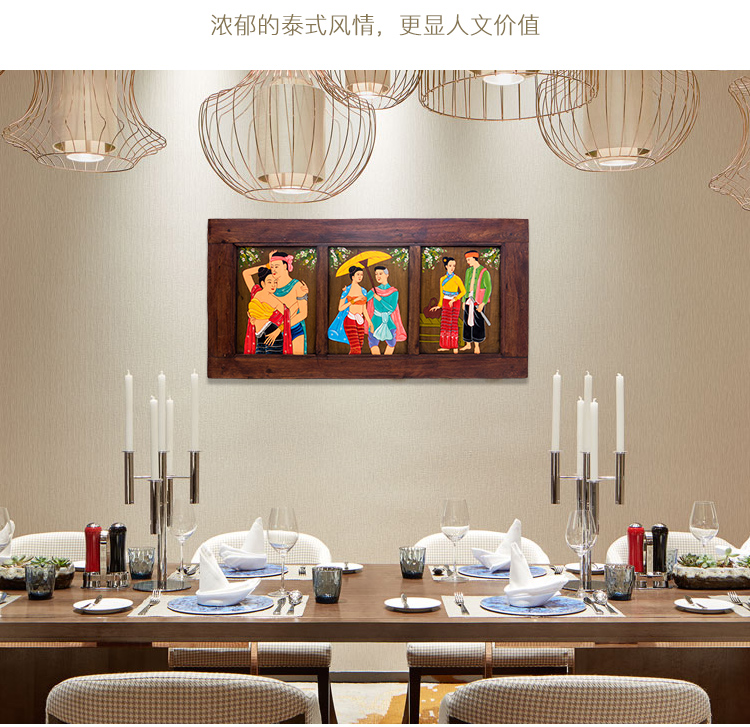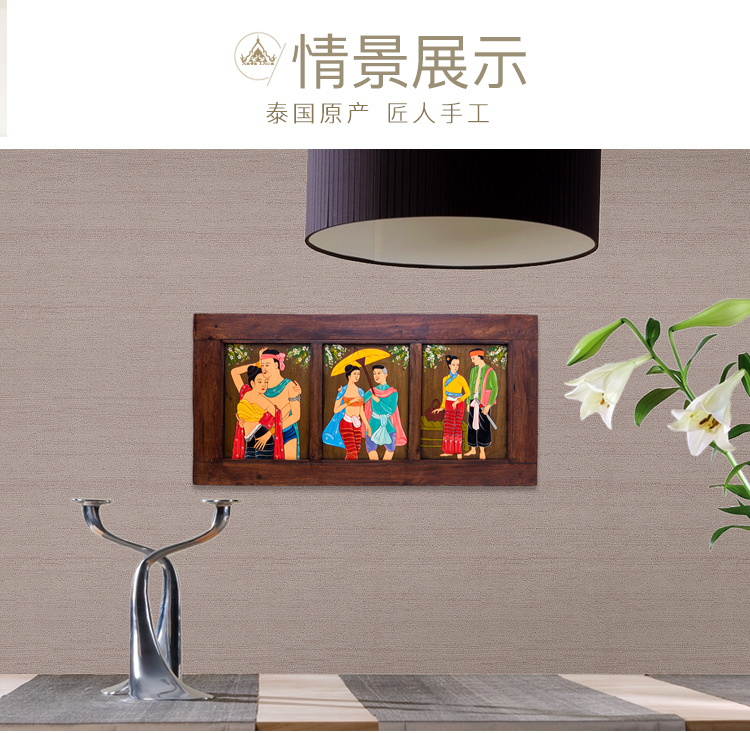 東南亞家居飾品 手繪田園人物木板畫 客廳玄關背景墻實木裝飾畫1入