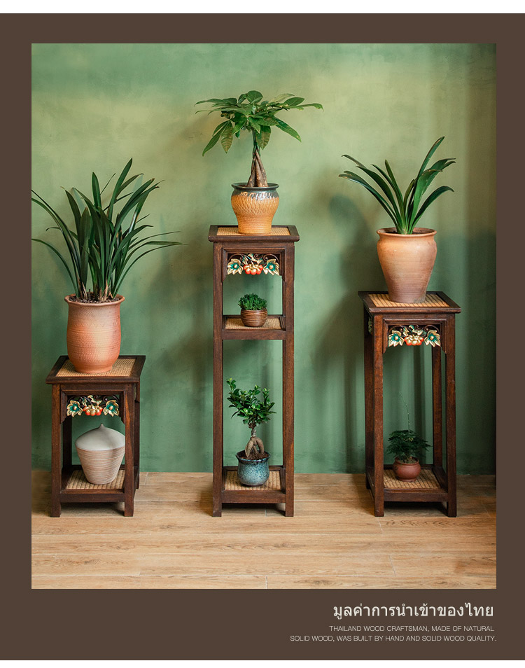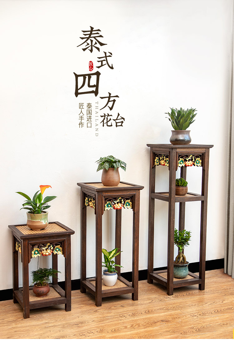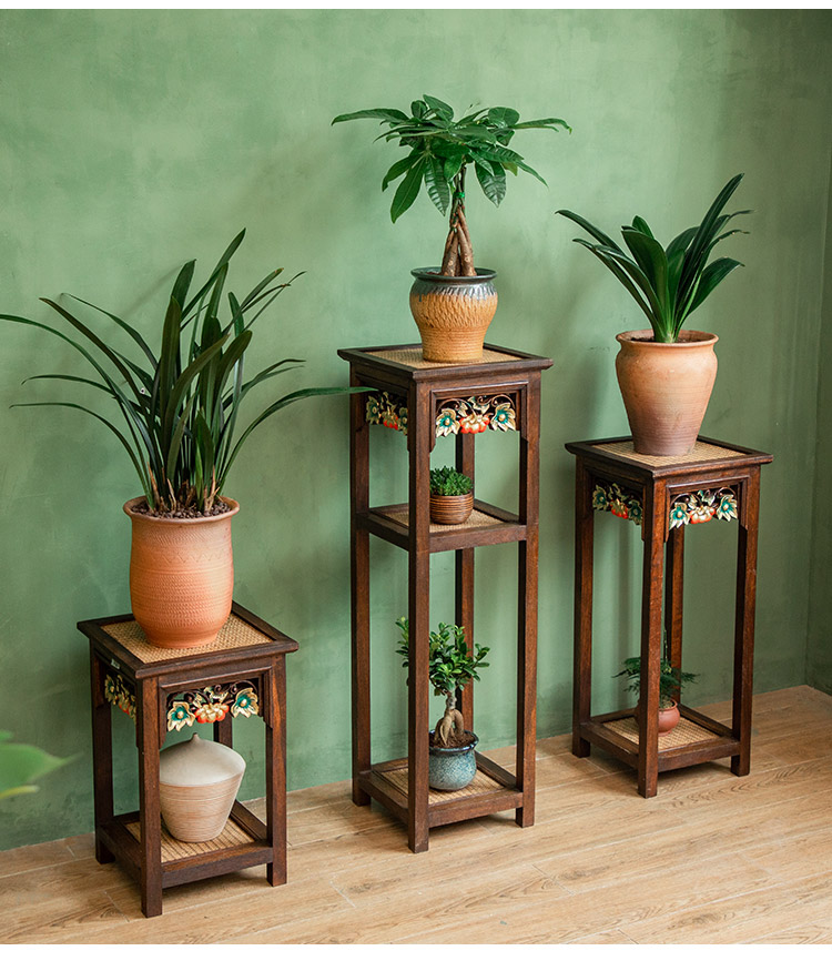 中式復古花架陽臺置物架實木花盆架客廳多層綠蘿花架子室內花幾1入
