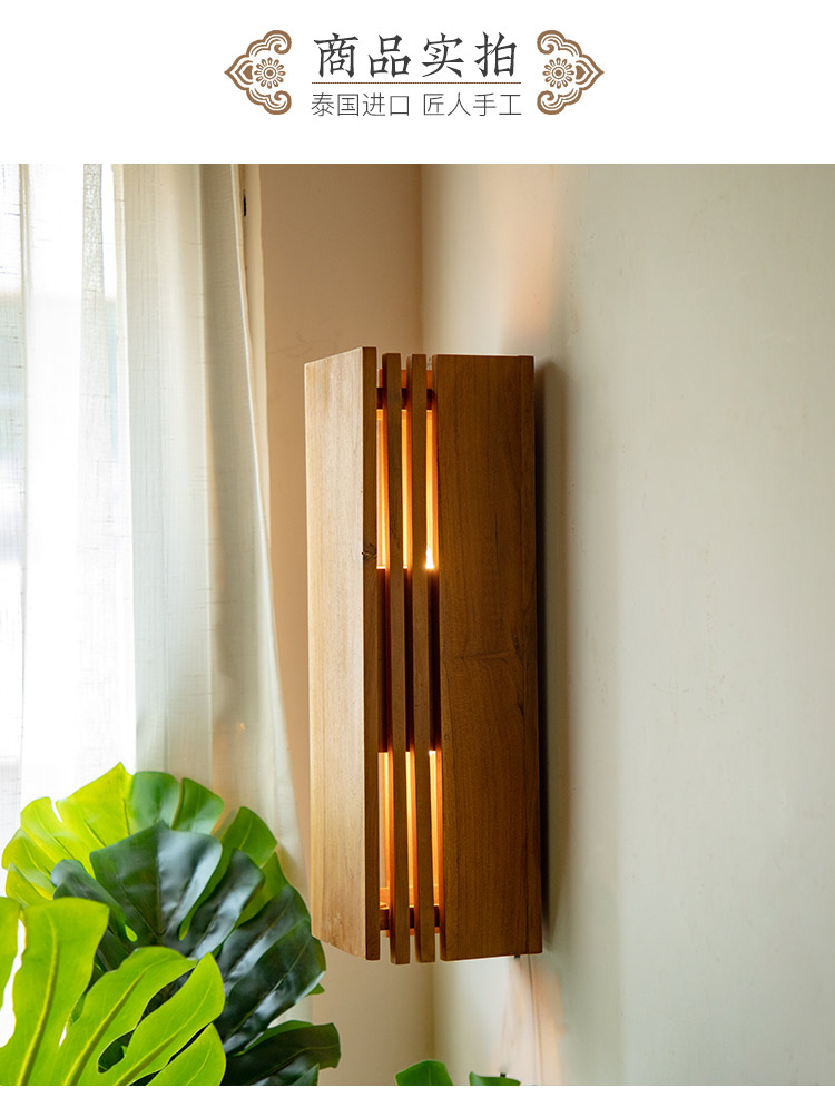 日式樓梯壁燈仿古床頭過道走廊電視墻實木中國風臥室現代客廳壁燈1入