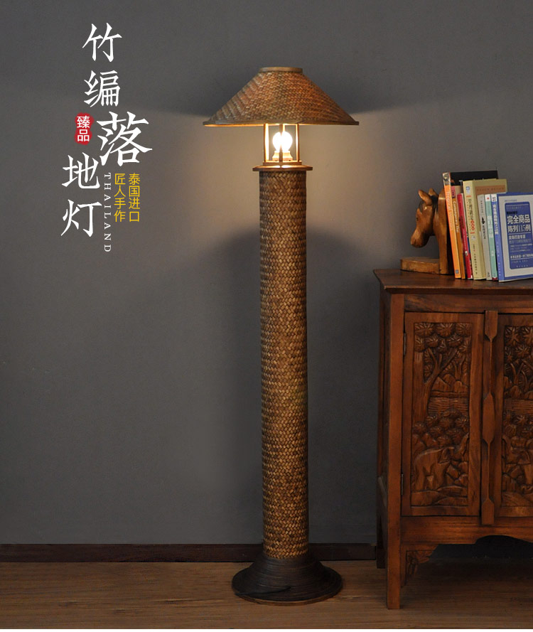 東南亞風格落地燈 臥室客廳創意時尚手工竹編燈 個性復古藝術燈飾1入