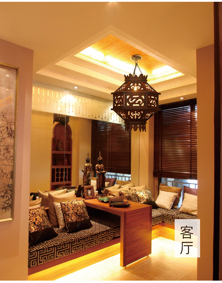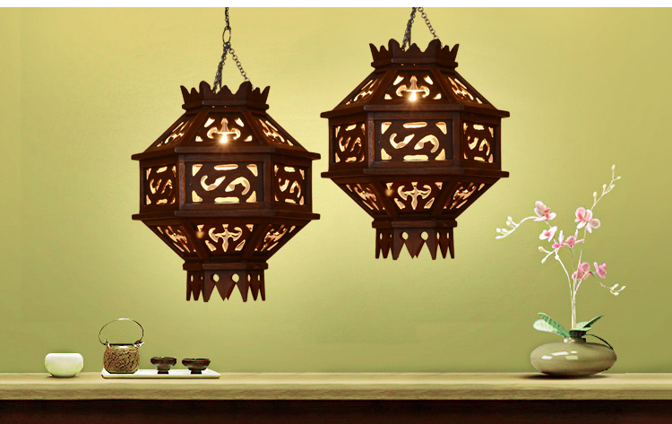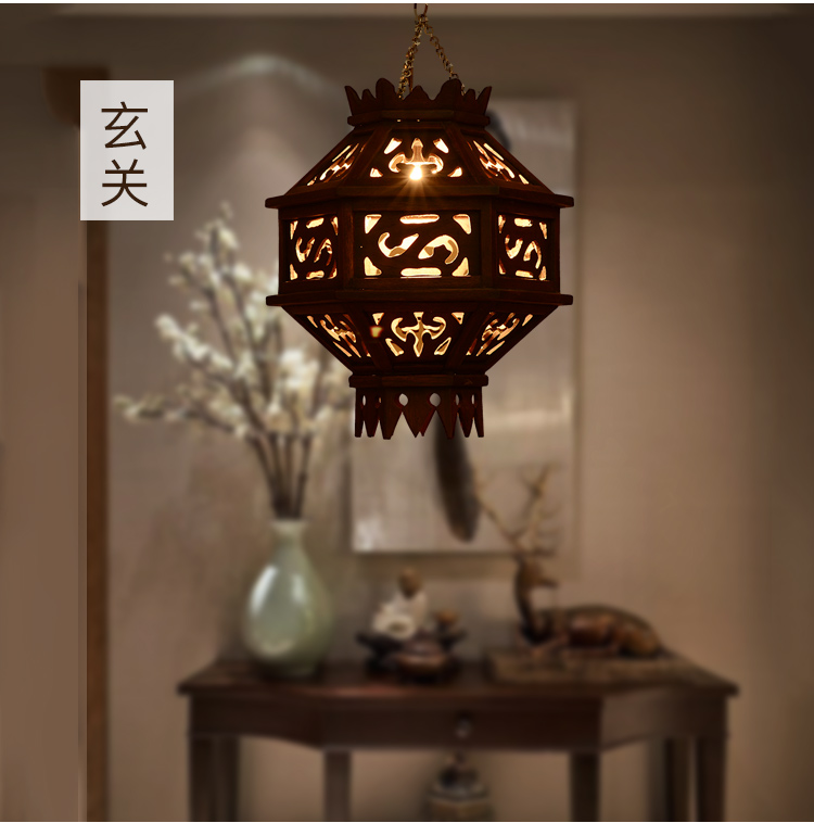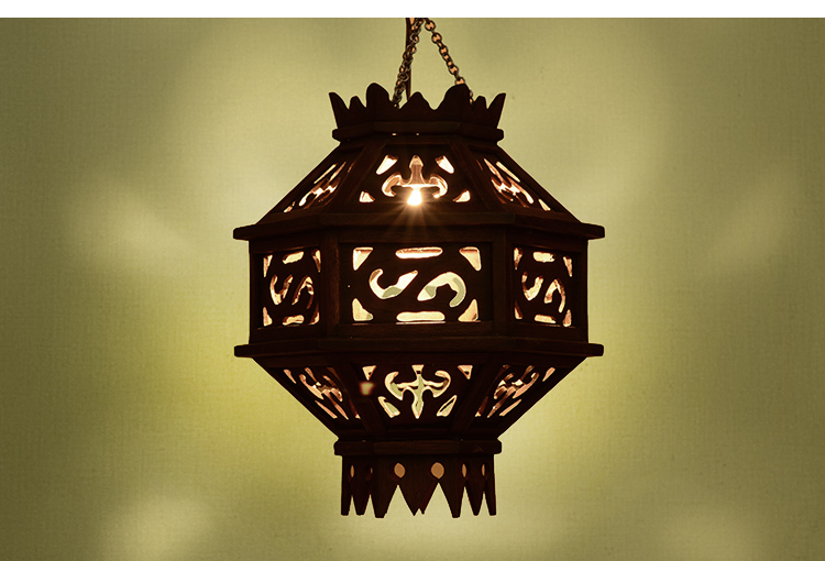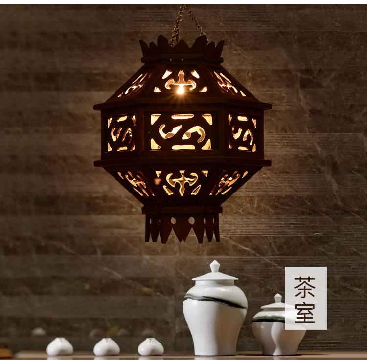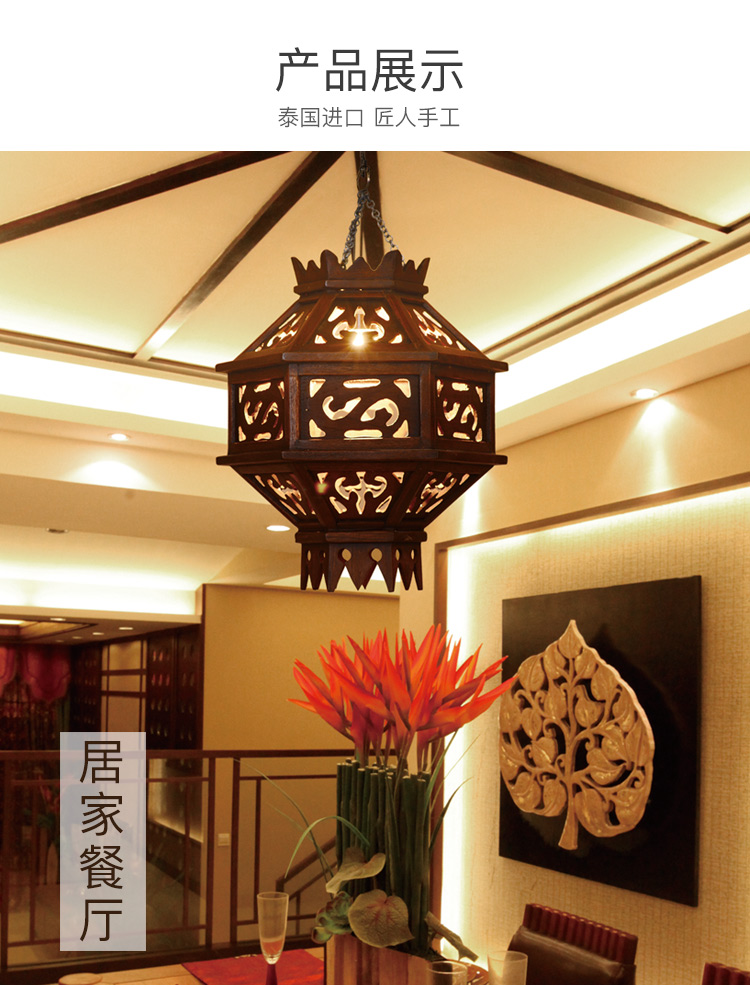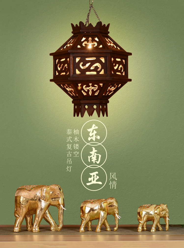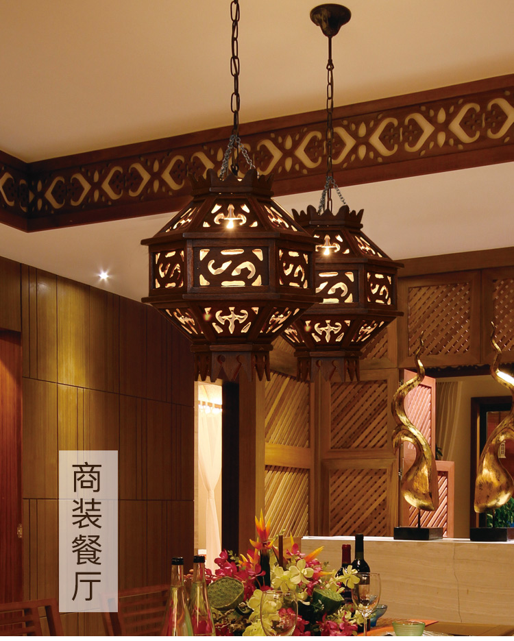 東南亞實木鏤空雕花吊燈歐式吊燈客廳會所餐廳燈具復古設計師燈具1入