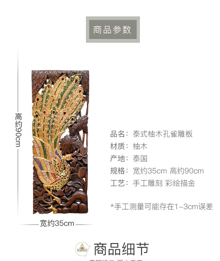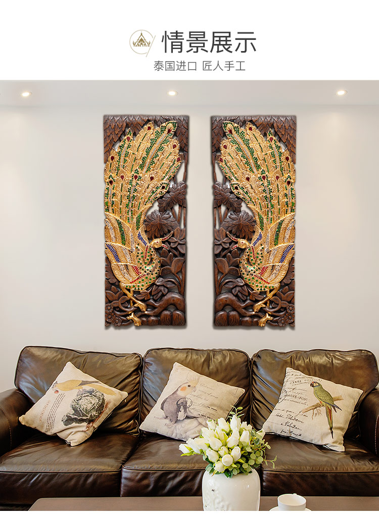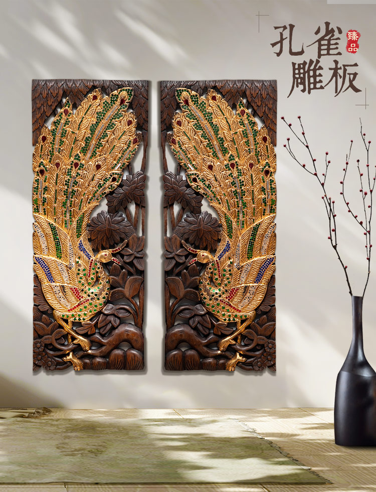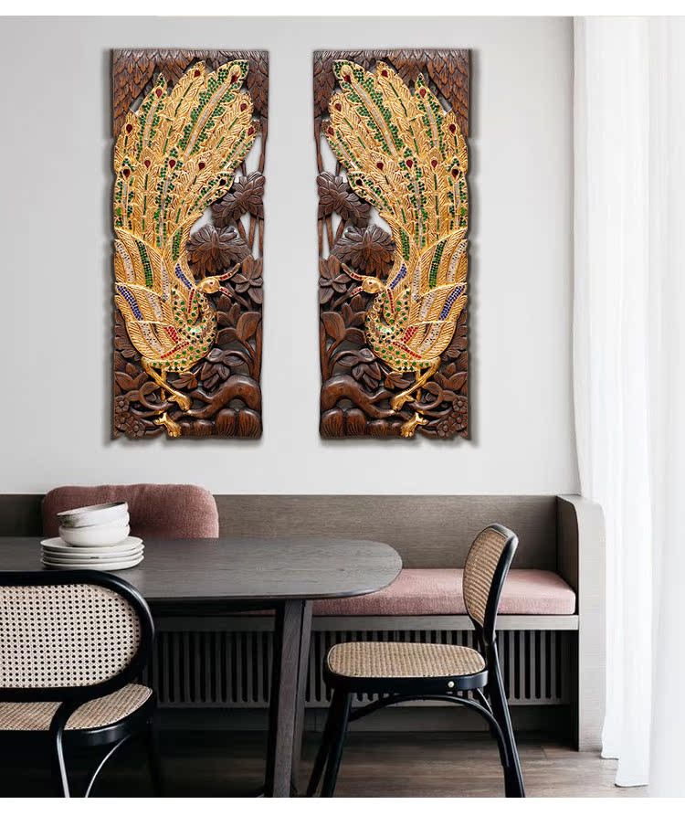 【 雙十二半價】東南亞裝飾工藝品孔雀壁飾客廳玄關背景墻實木1入