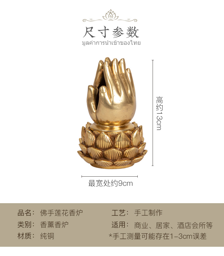 異麗 泰式SPA仿古純銅香爐禪意擺件 居室創意佛手香爐塔香香薰爐1入