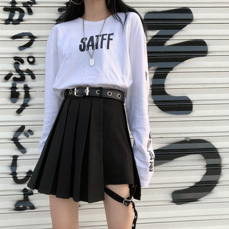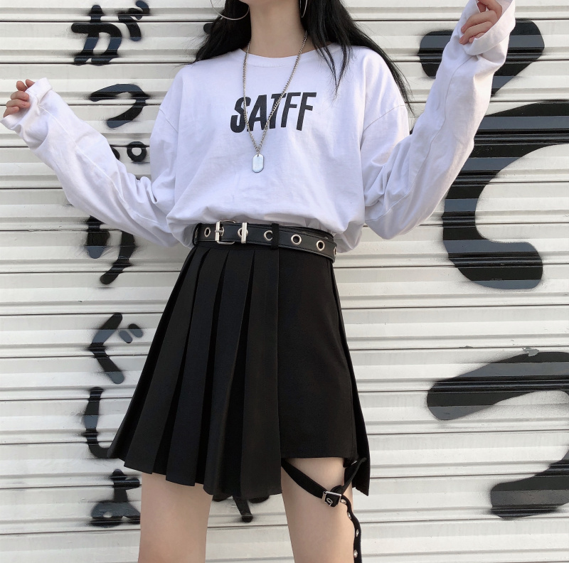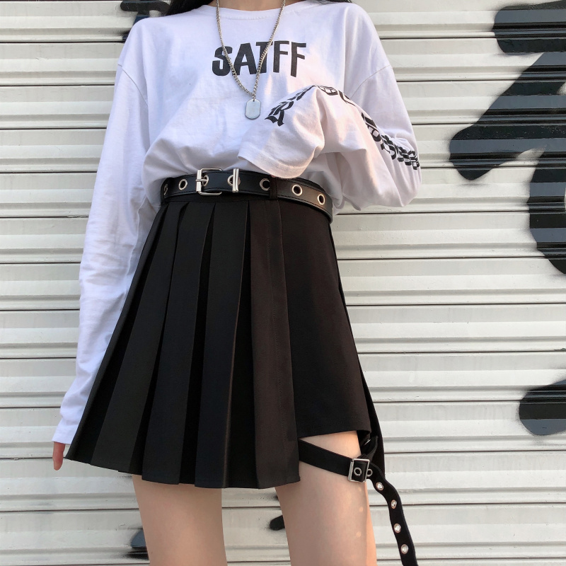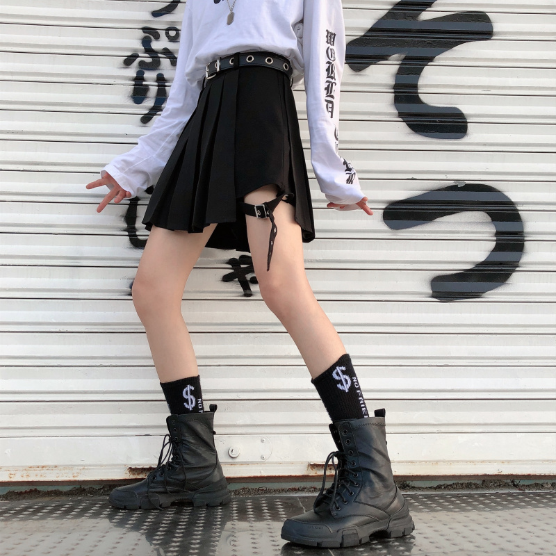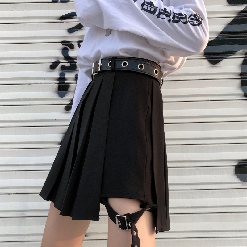 黑暗系朋克高腰百褶裙短褲裙女大碼胖mm假兩件個性不規則半身裙褲1入