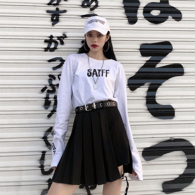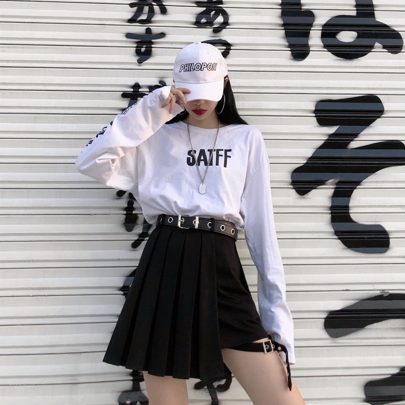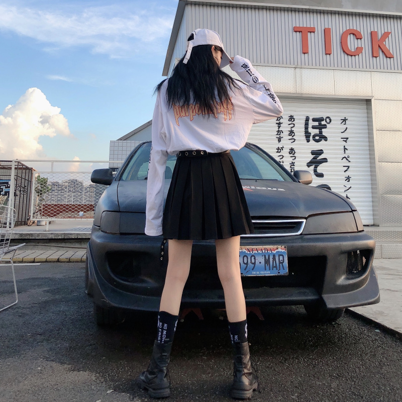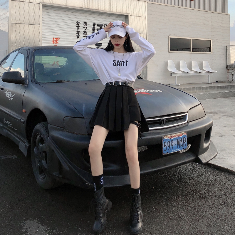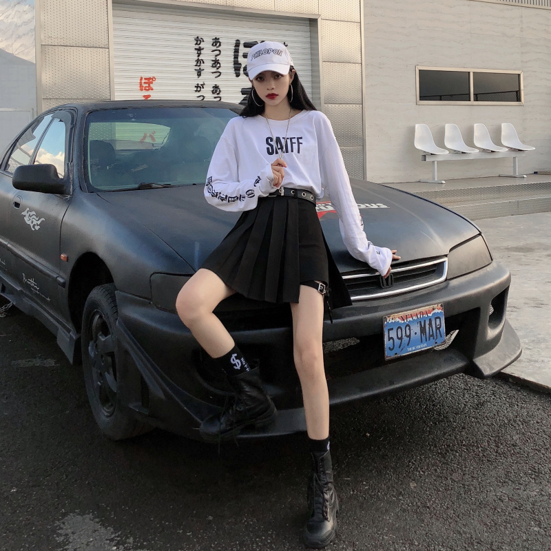 黑暗系朋克高腰百褶裙短褲裙女大碼胖mm假兩件個性不規則半身裙褲1入