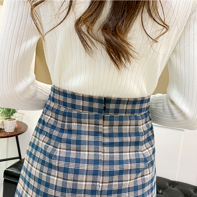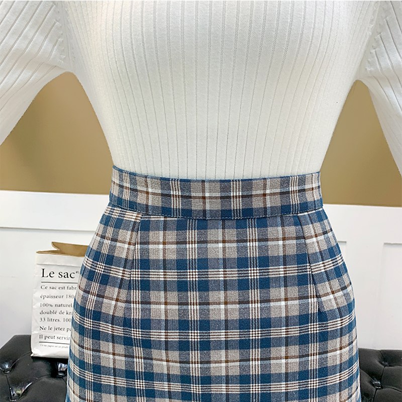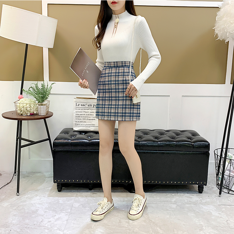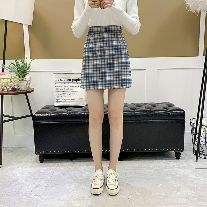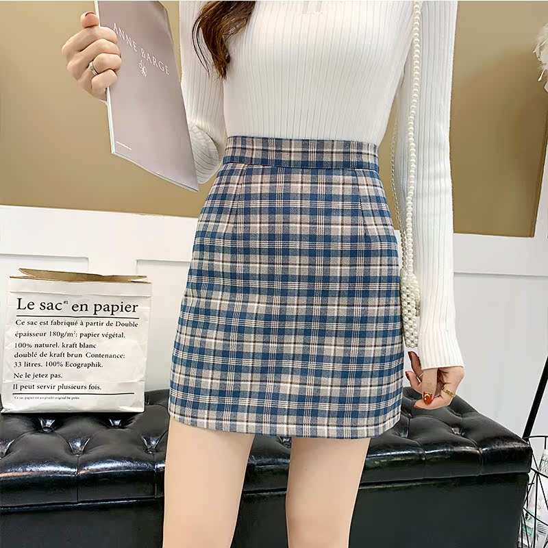 韓版格子毛呢裙高腰顯瘦大碼短裙 A字半身裙秋冬女遮胯裙子冬1入