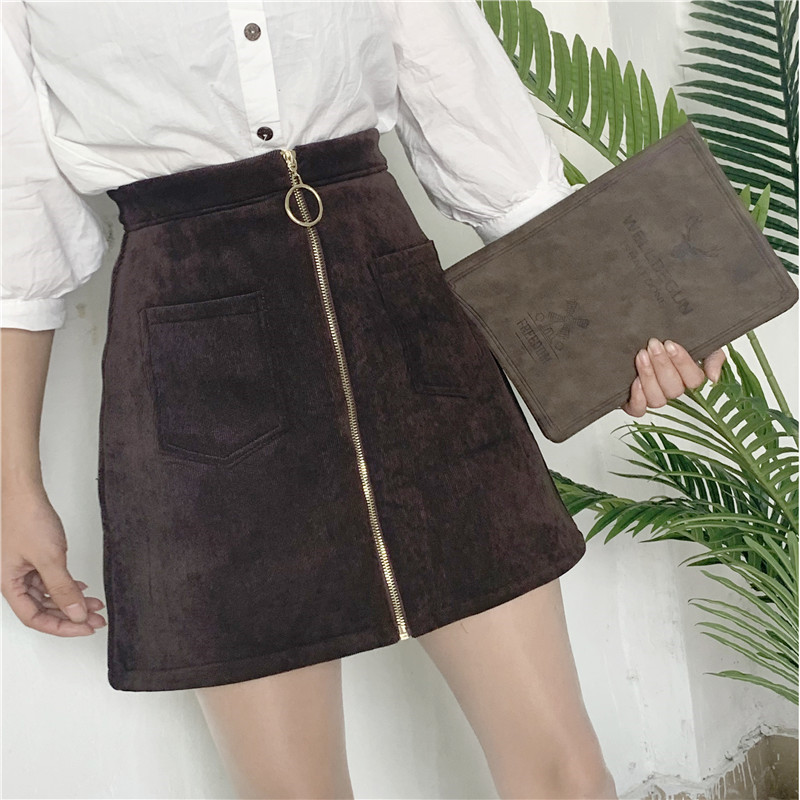 大碼女裝高腰燈芯絨a字裙拉鏈短裙加厚秋
