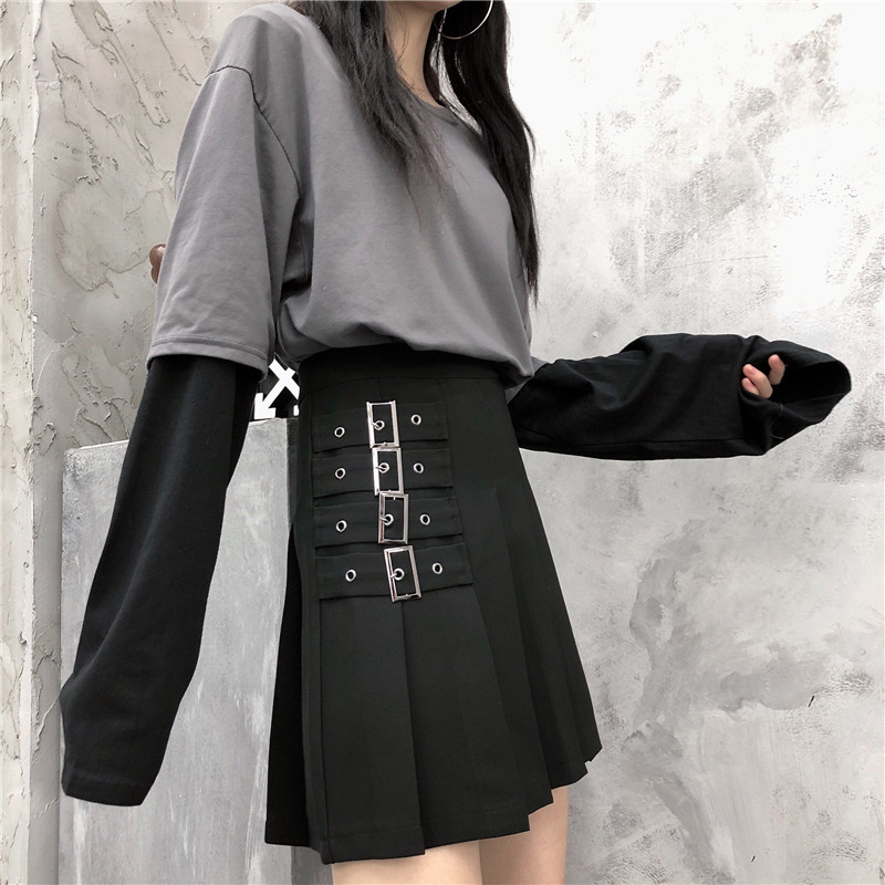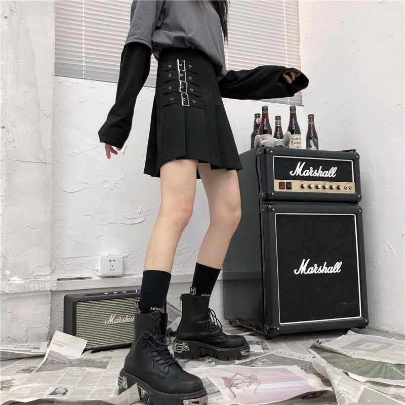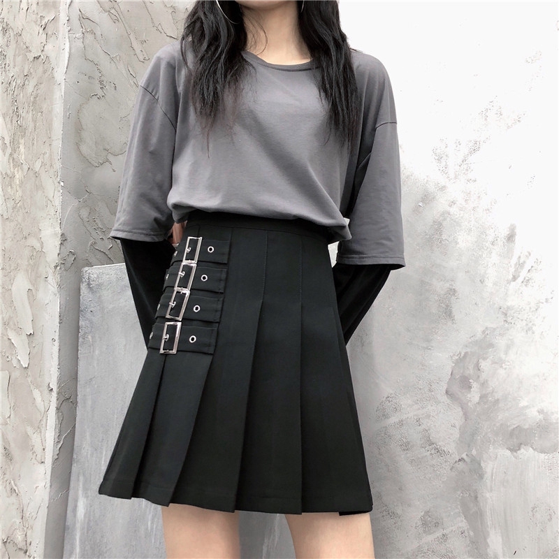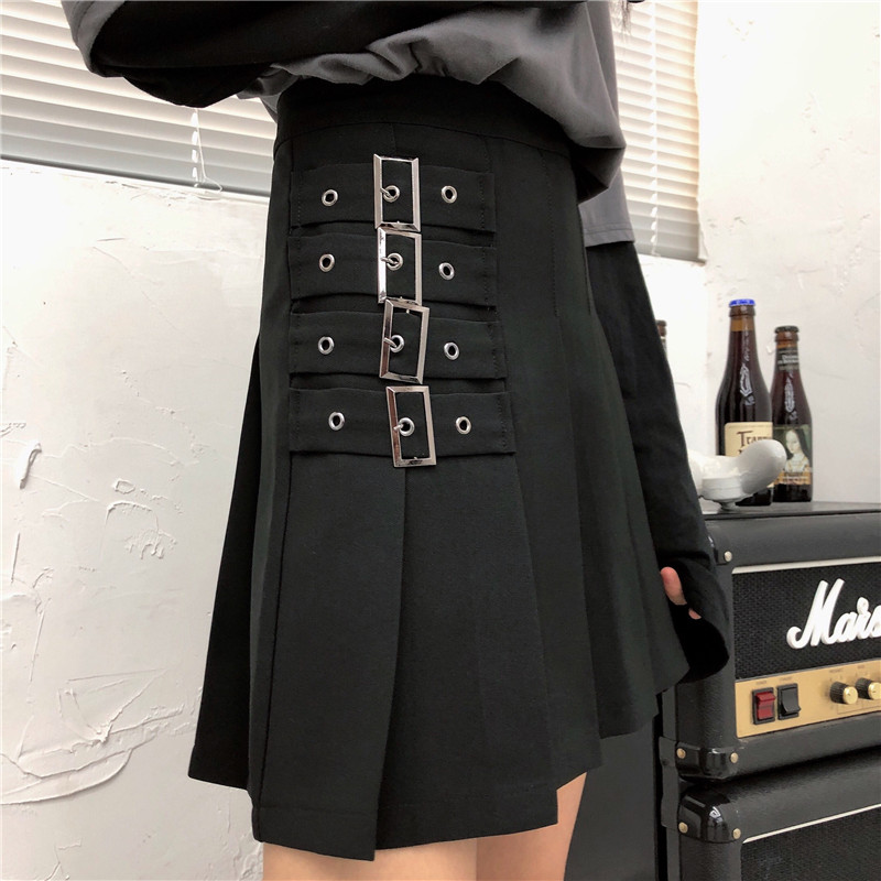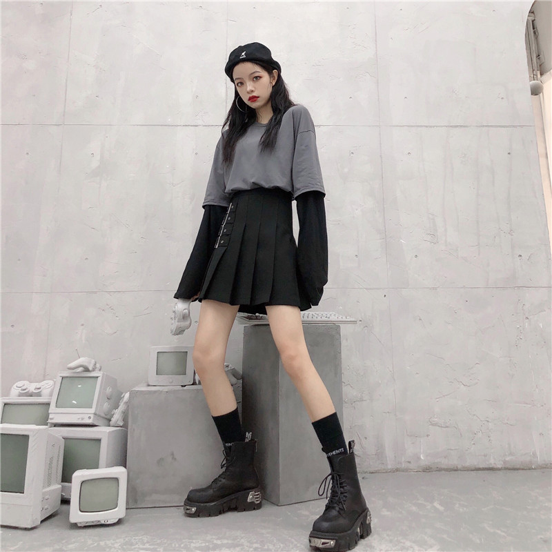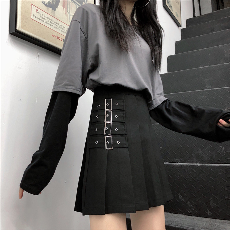 黑暗系半身裙女秋冬a字裙適跨大腿粗胖mm高腰顯瘦大碼百褶裙1入