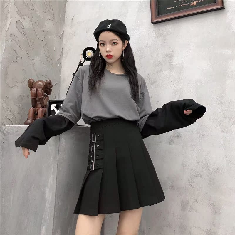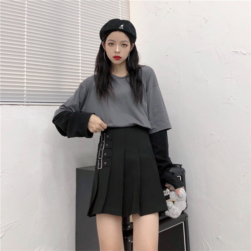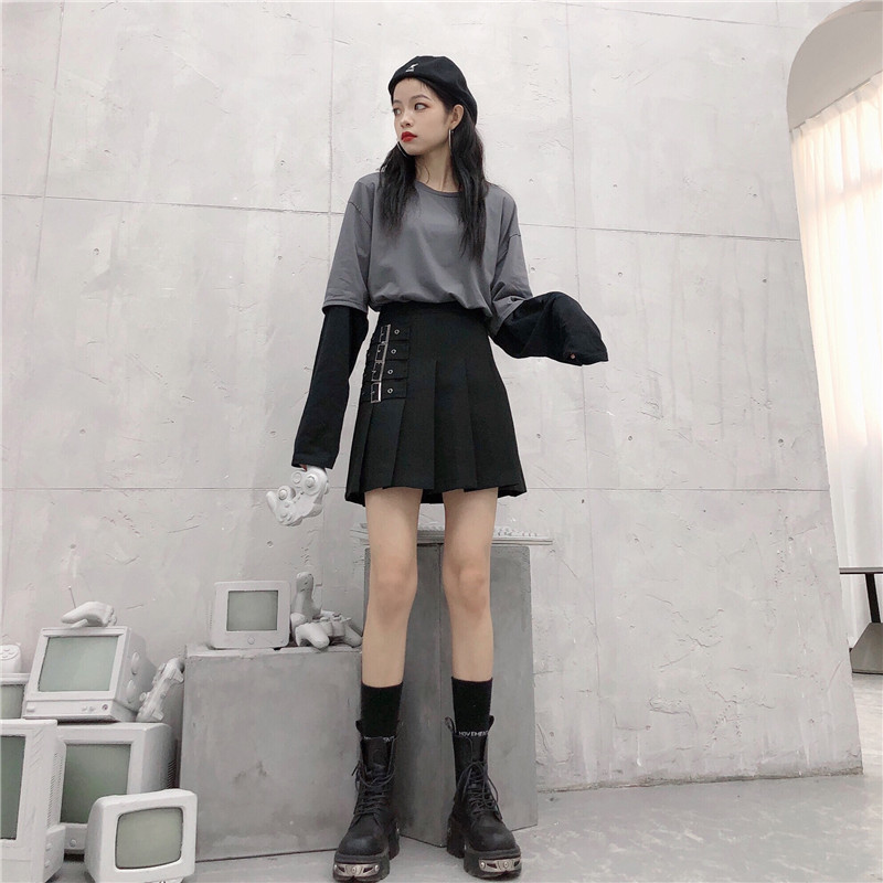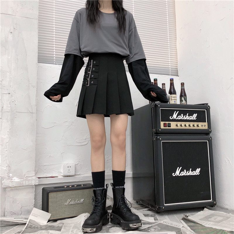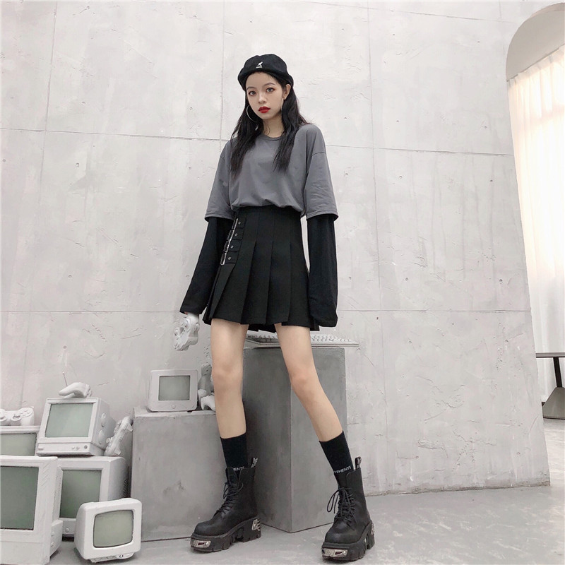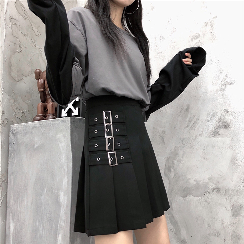 黑暗系半身裙女秋冬a字裙適跨大腿粗胖mm高腰顯瘦大碼百褶裙1入