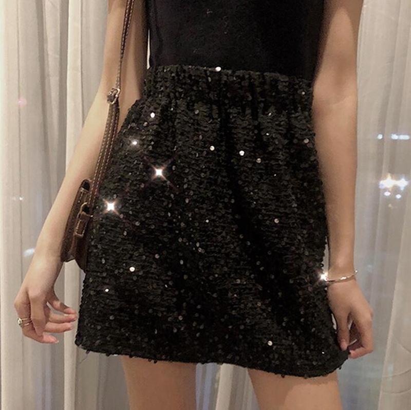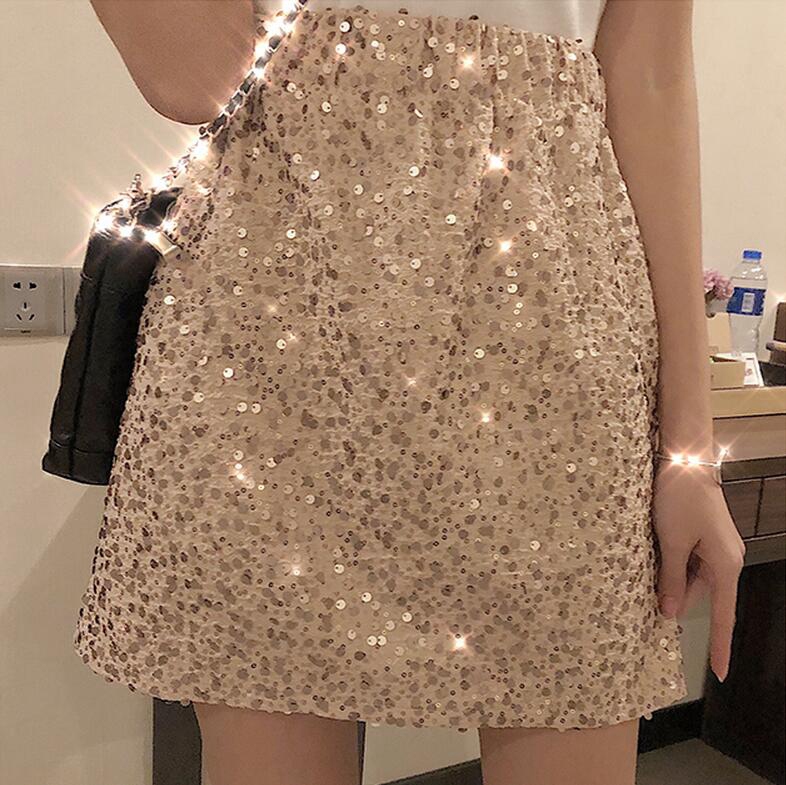 閃閃裙子高腰半身裙女大碼顯瘦港味夏季性感蹦迪亮片A字短裙1入
