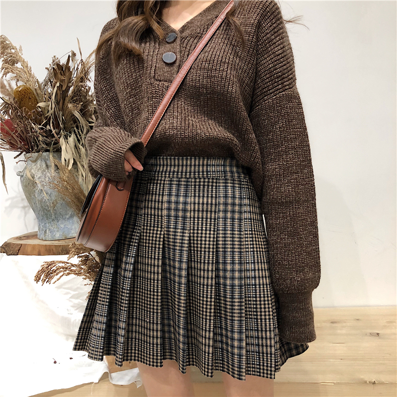 韓版ins超火短裙胖mm大碼高腰半身裙女學院風毛呢格子百褶裙褲裙1入
