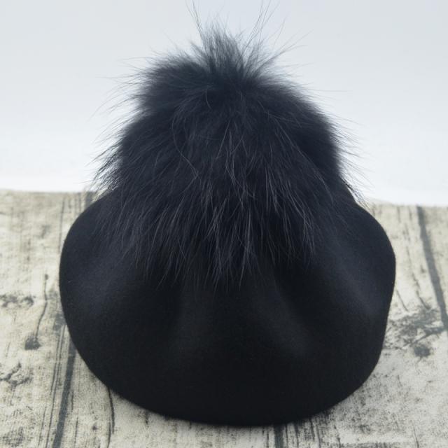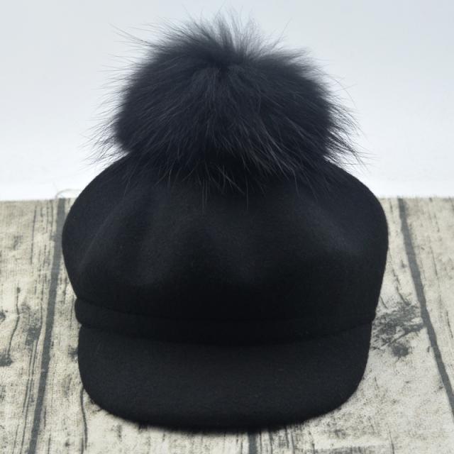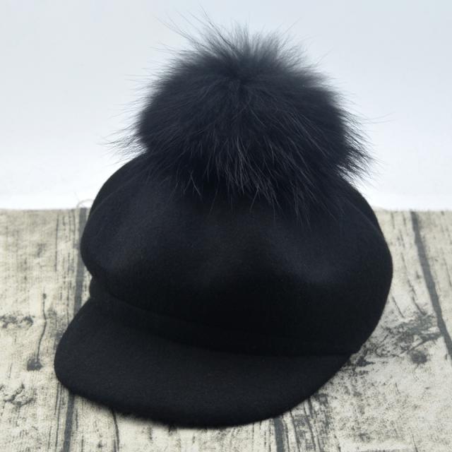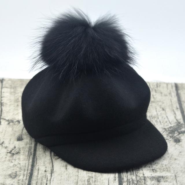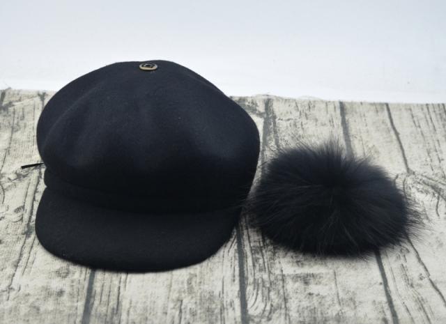 超大真貉子毛球光身羊毛呢帽子女保暖韓版潮秋冬季休閑百搭八角帽1入