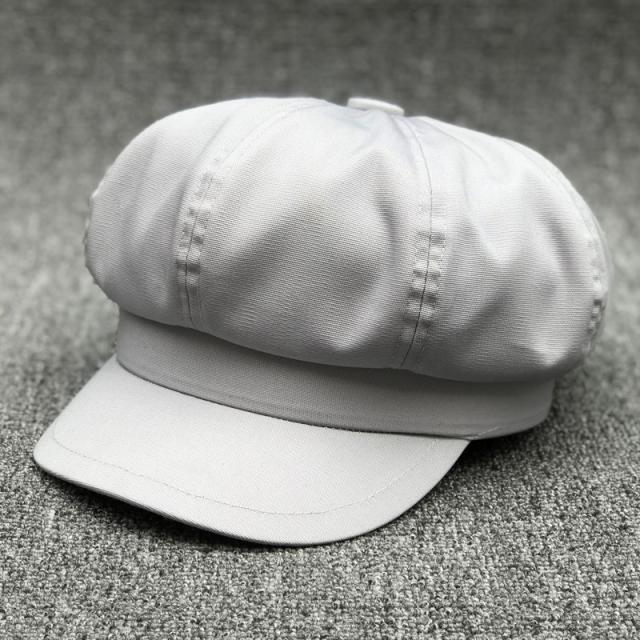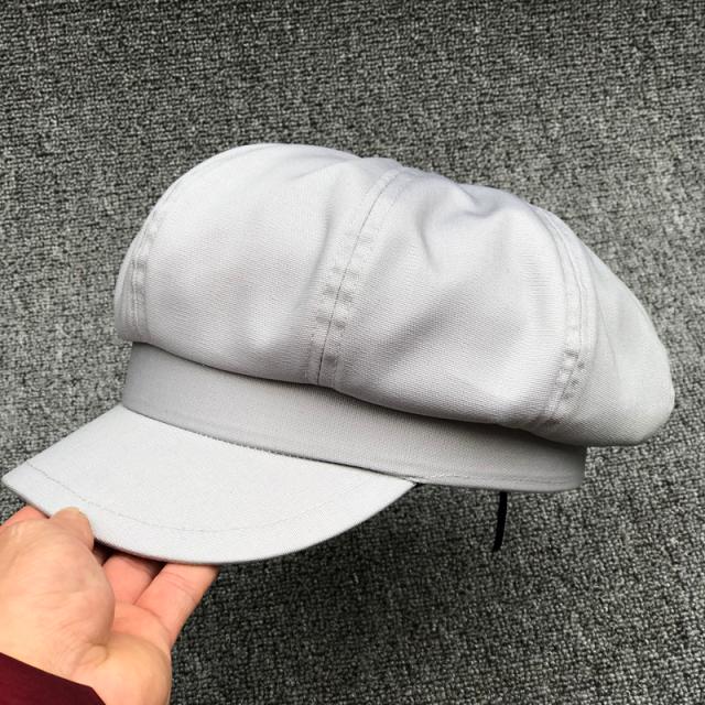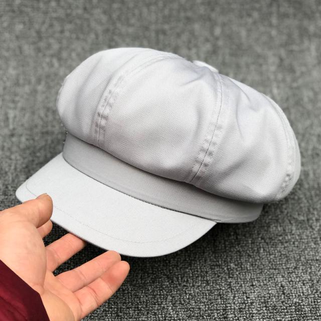 雅致八角帽子女春夏薄帆布灰色貝雷帽韓版潮百搭鴨舌畫家帽大小號1入