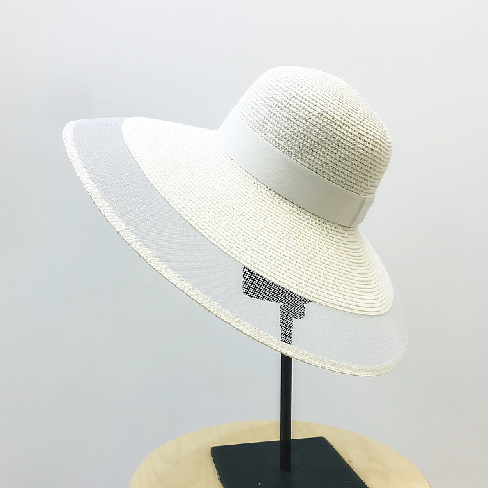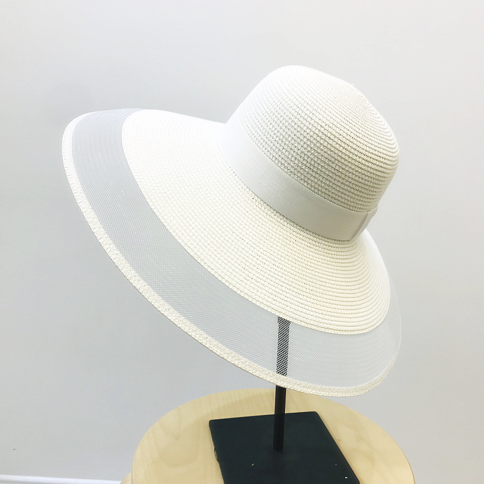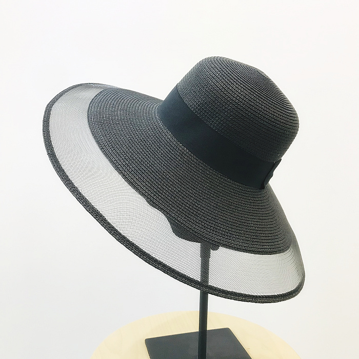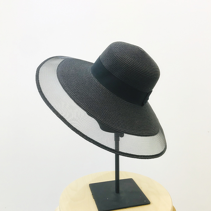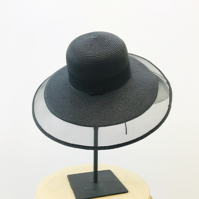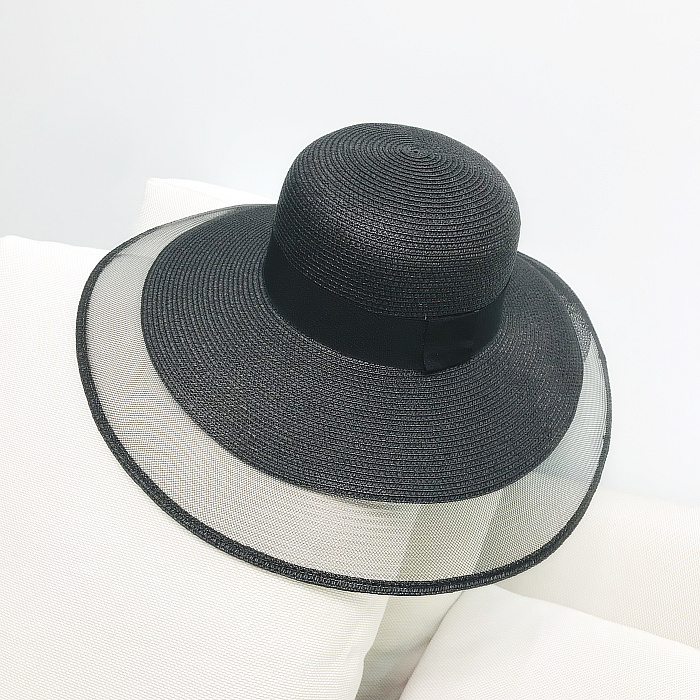赫本風復古小香風大沿優雅網紗海邊沙灘防曬遮陽草帽出游百搭1入