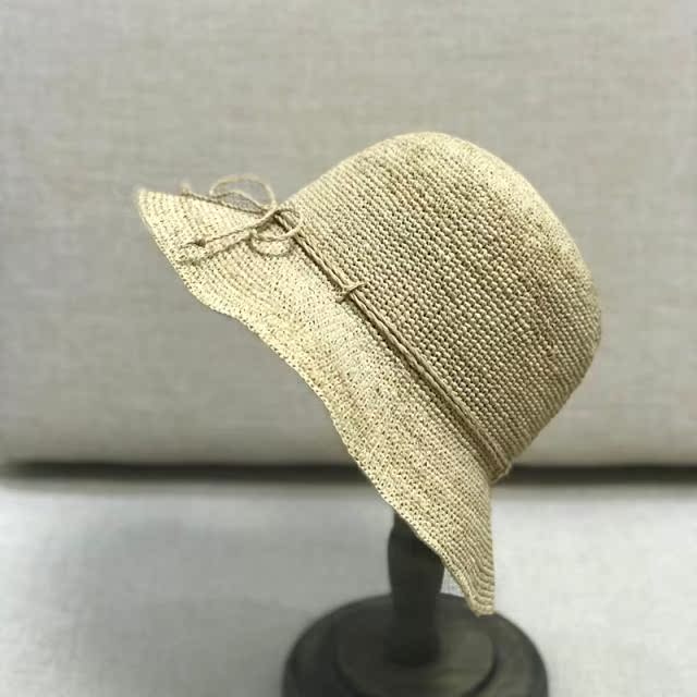 超細密拉菲草款兒童遮陽草帽日系圓頂小檐盆帽男女夏季防紫外線帽1入