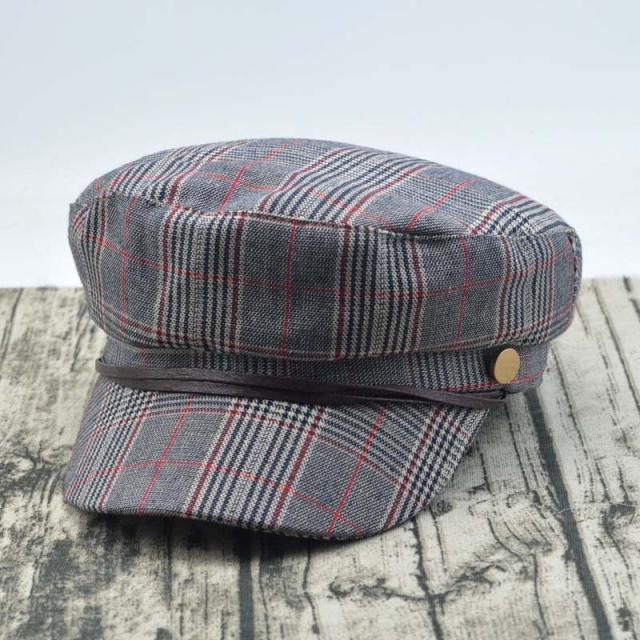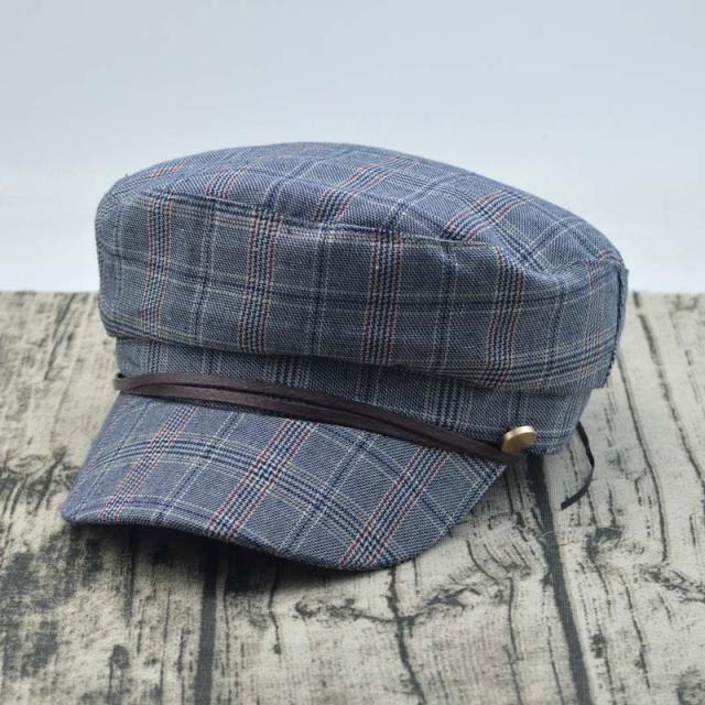 鴨舌帽女春夏天韓版文藝復古格子貝雷帽百搭英倫畫家帽平頂海軍帽1入