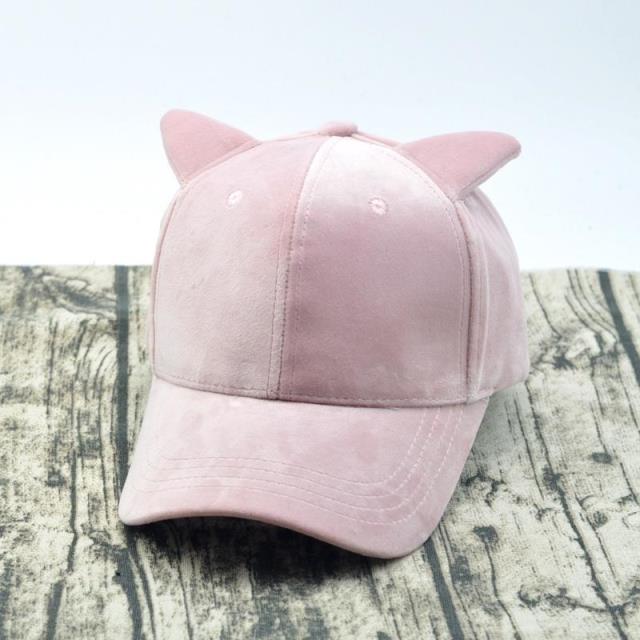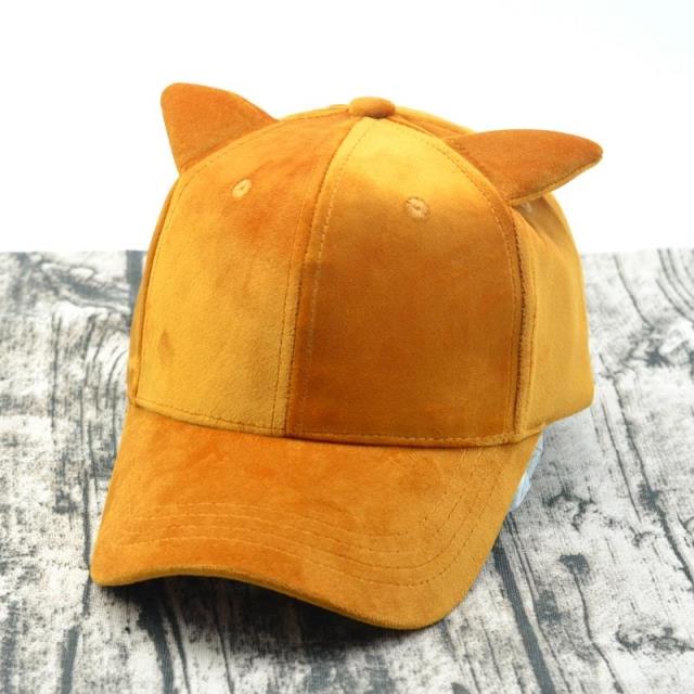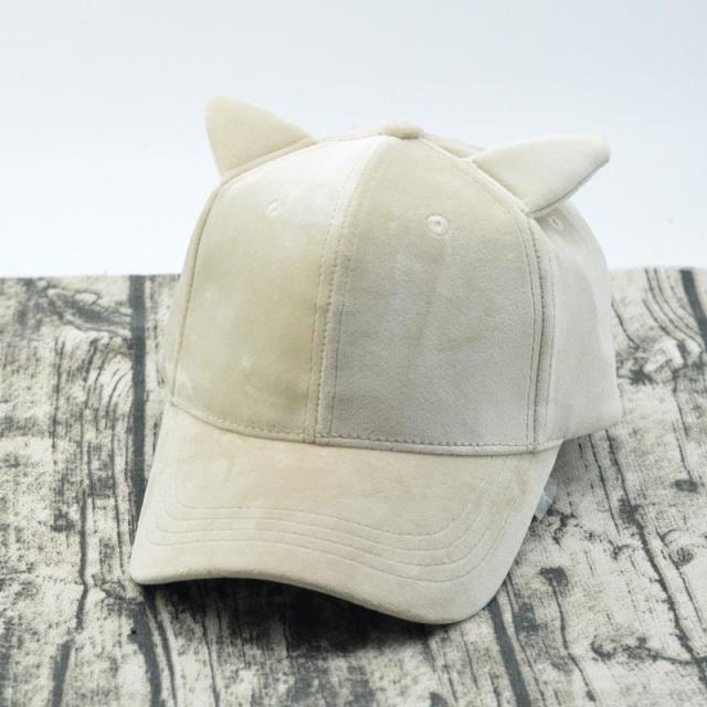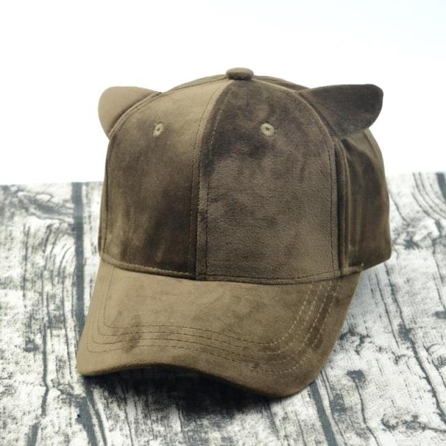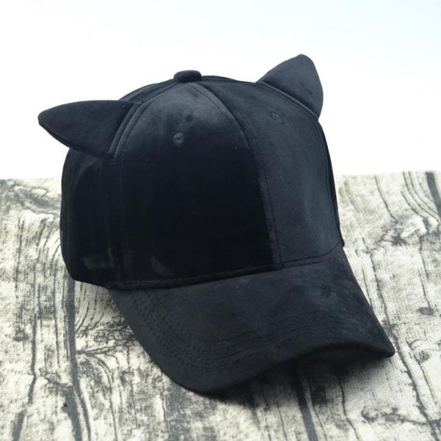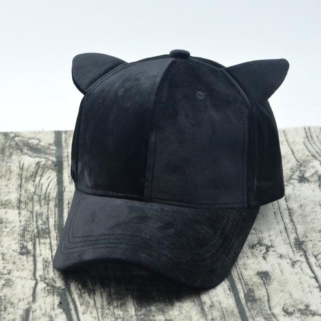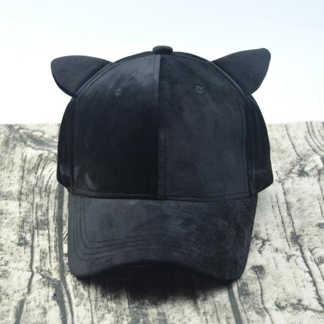 貓耳朵帽子黑色棒球帽女秋冬韓版水晶絨百搭潮人帽子女學生鴨舌帽1入