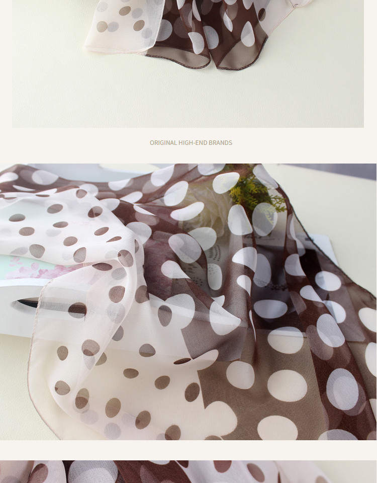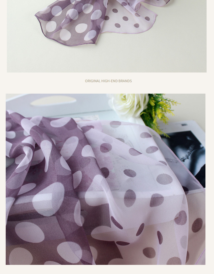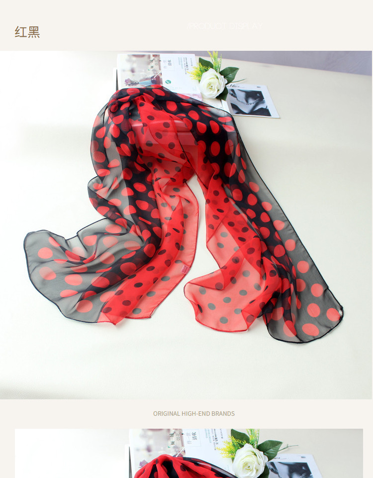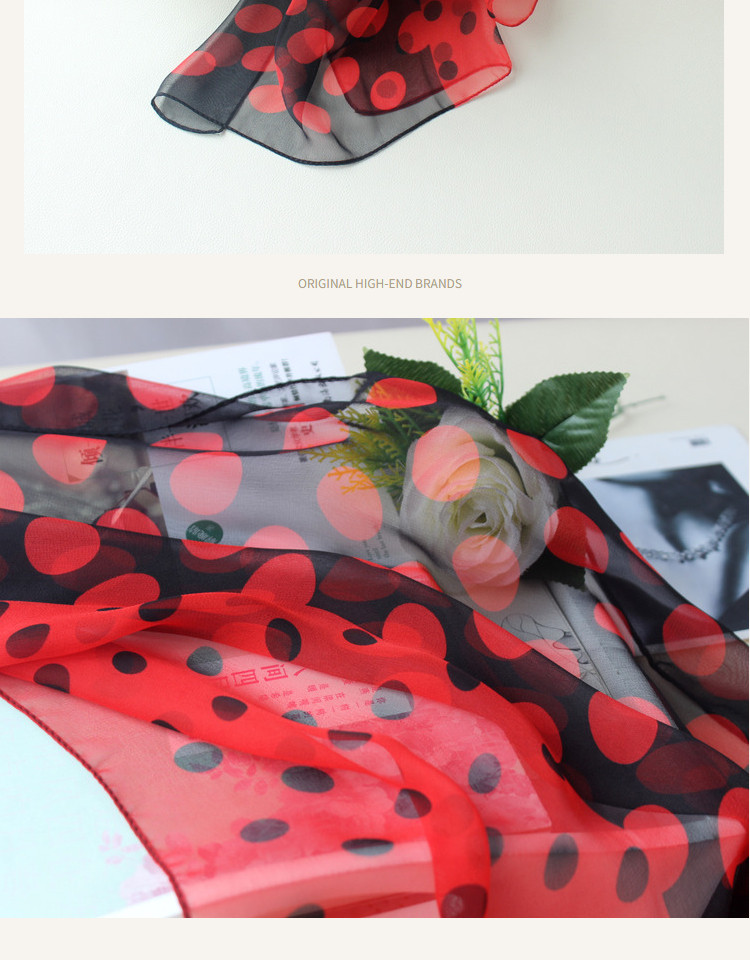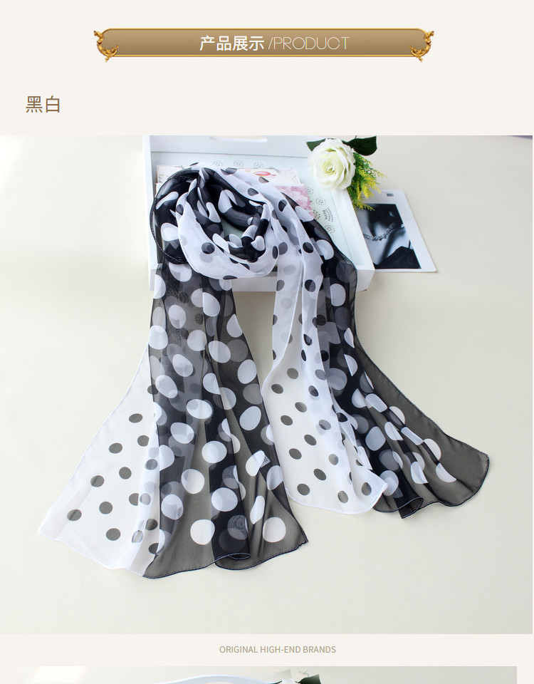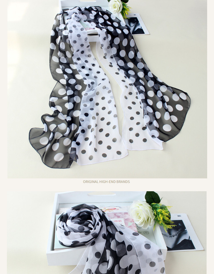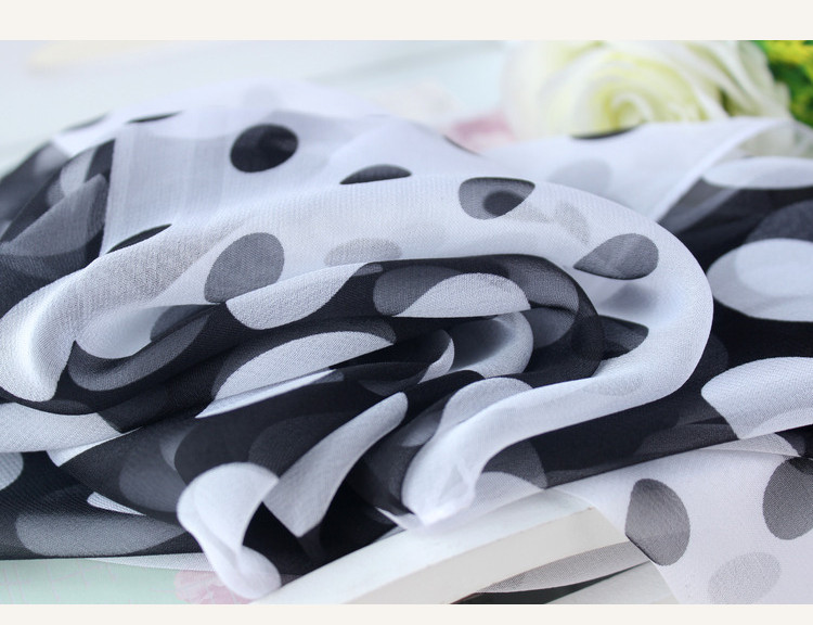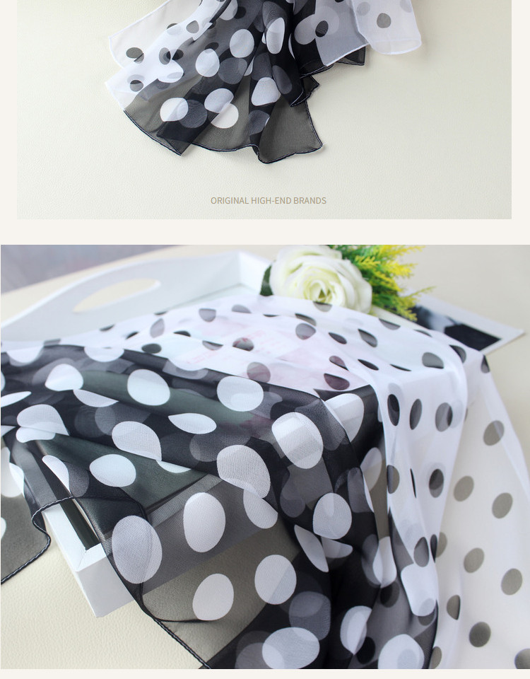 黑白色大小波點絲巾喬其紗圍巾女春夏紗巾薄款春秋冬百搭小版圓點1入
