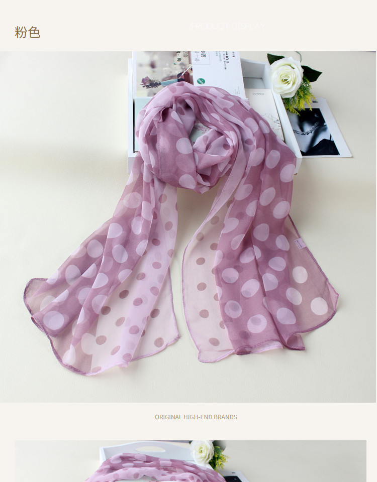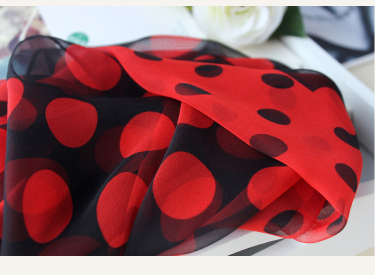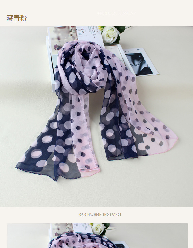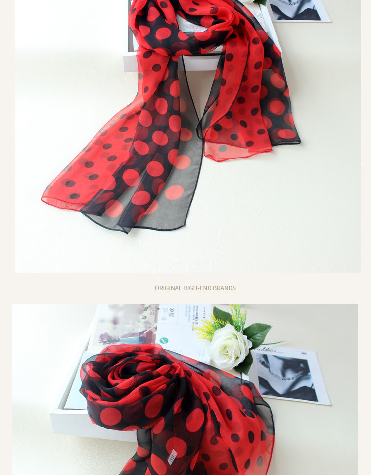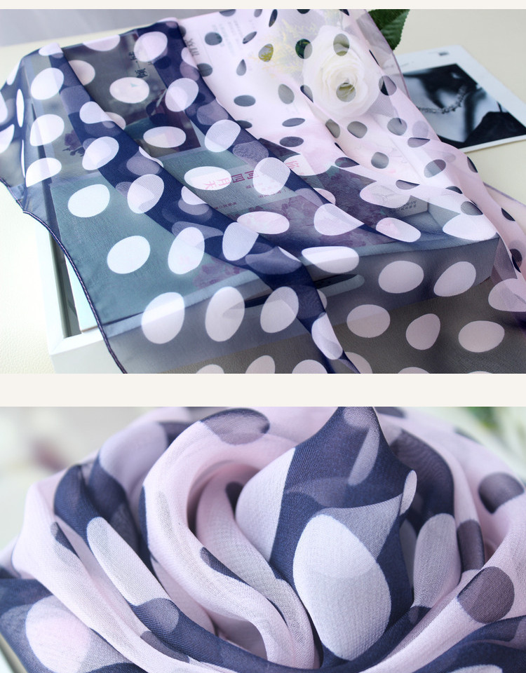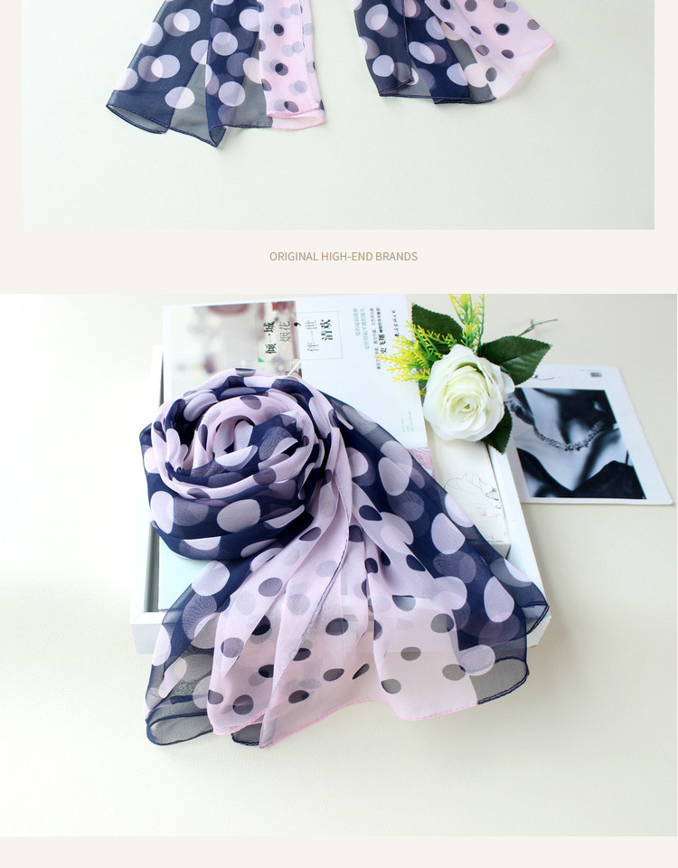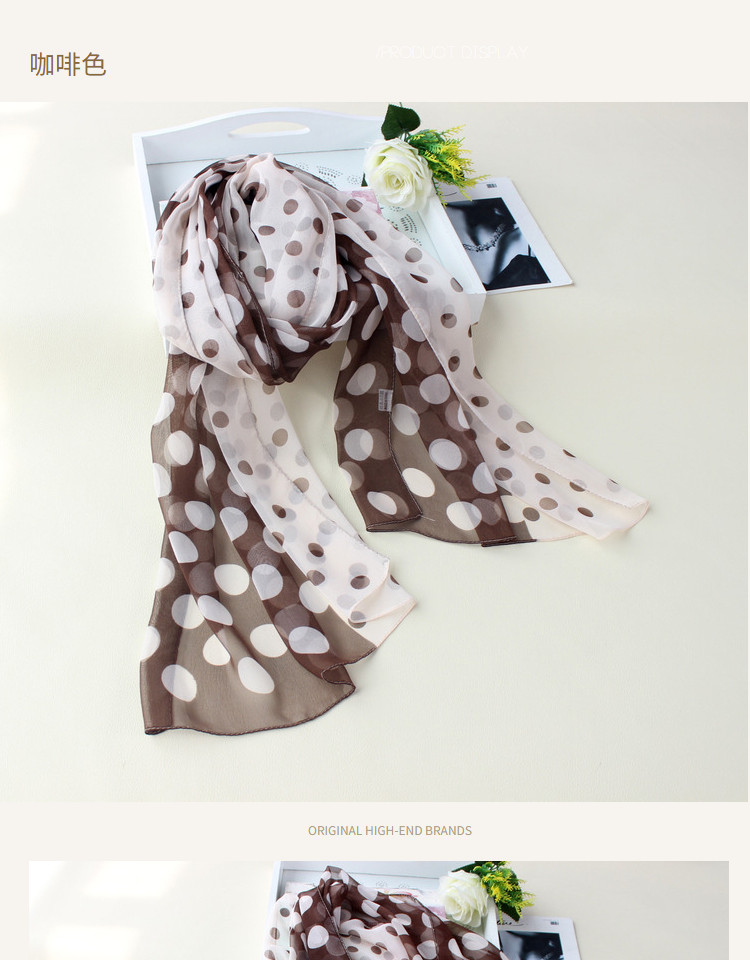 黑白色大小波點絲巾喬其紗圍巾女春夏紗巾薄款春秋冬百搭小版圓點1入