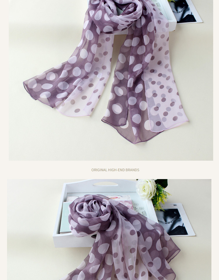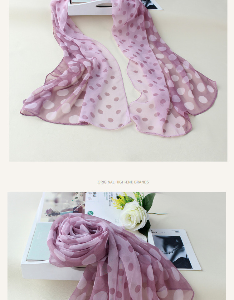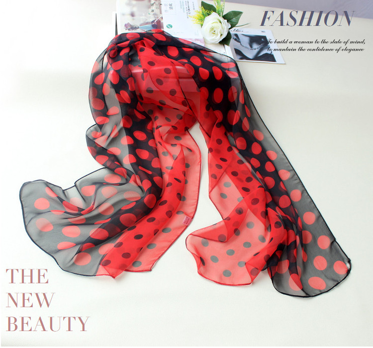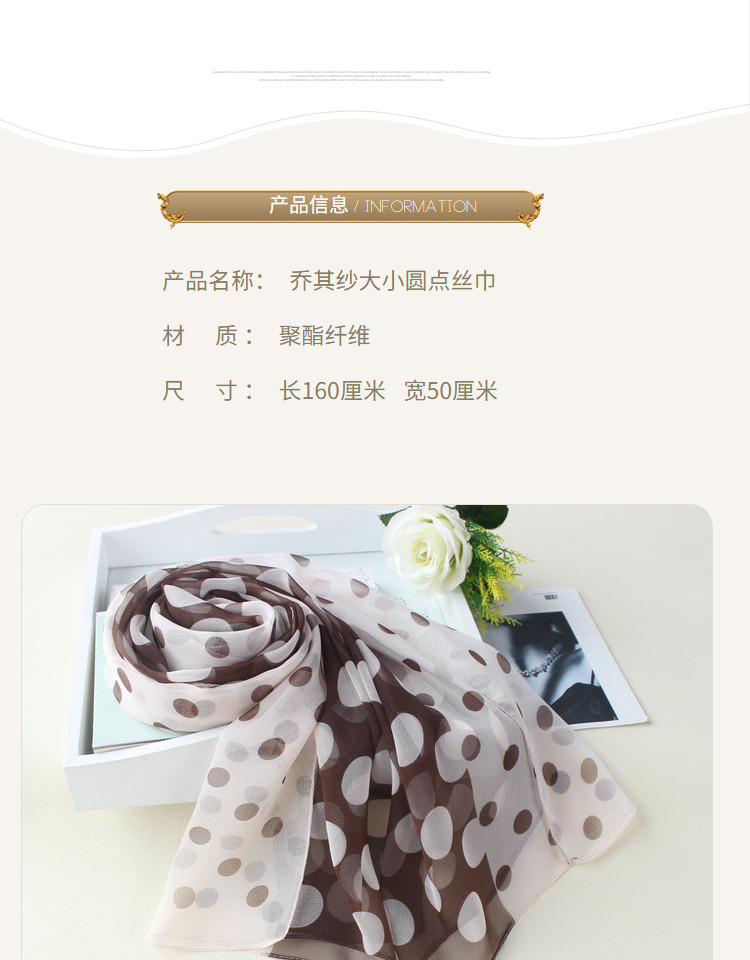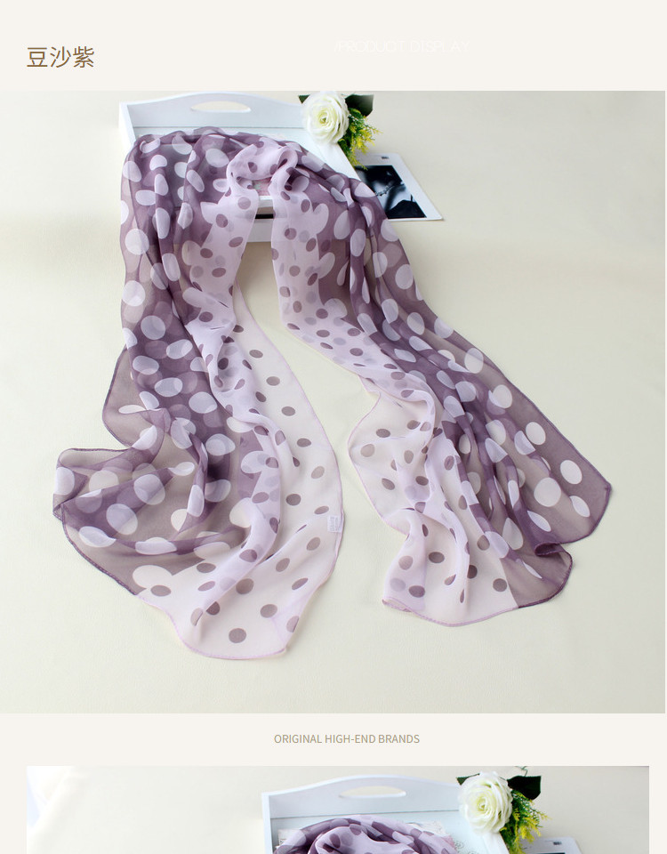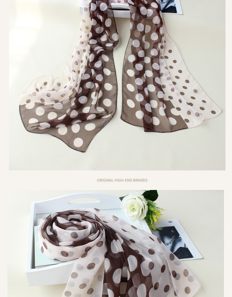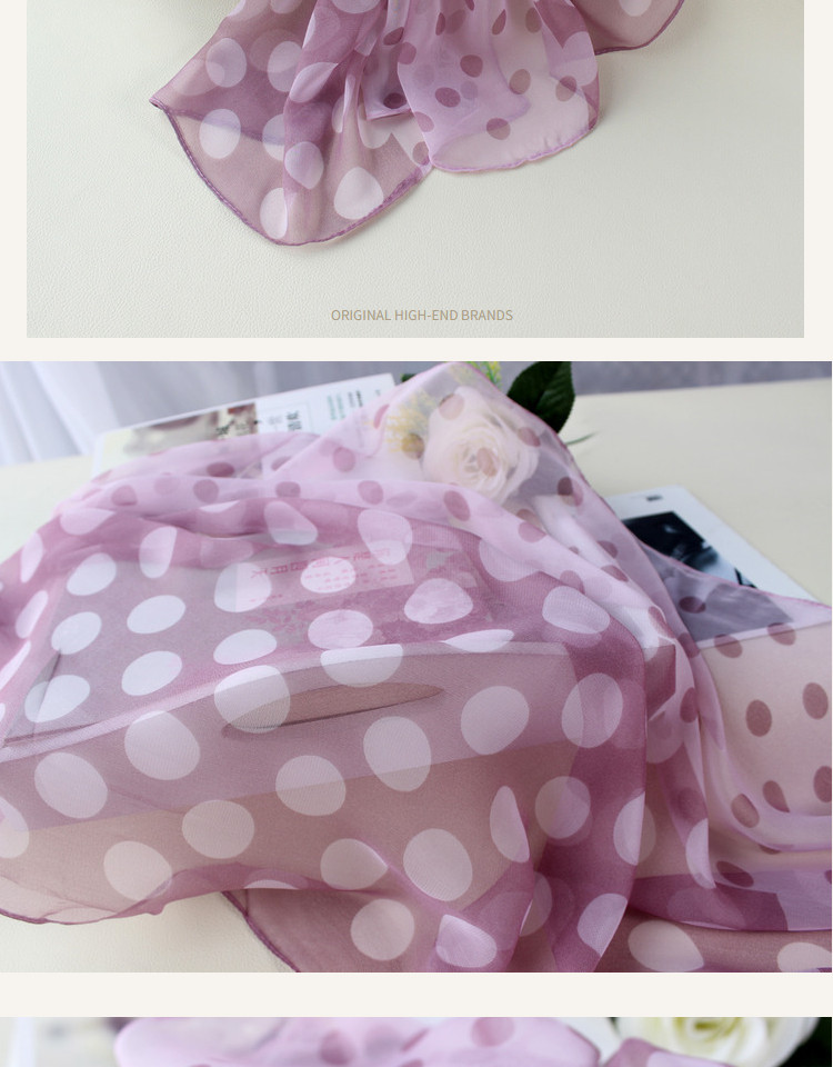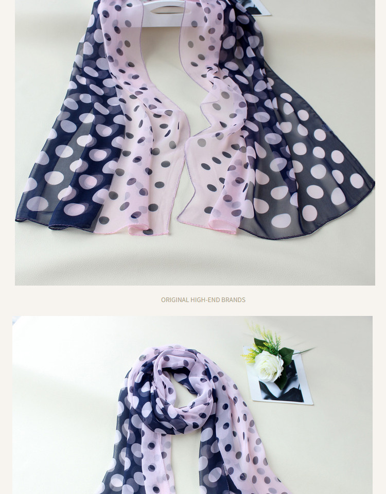 黑白色大小波點絲巾喬其紗圍巾女春夏紗巾薄款春秋冬百搭小版圓點1入
