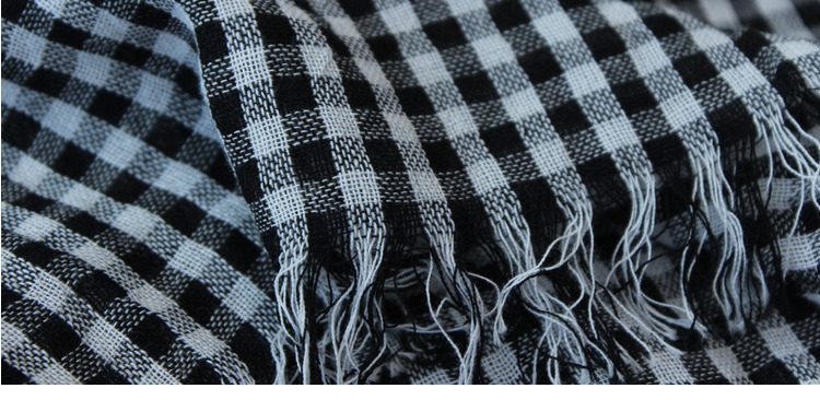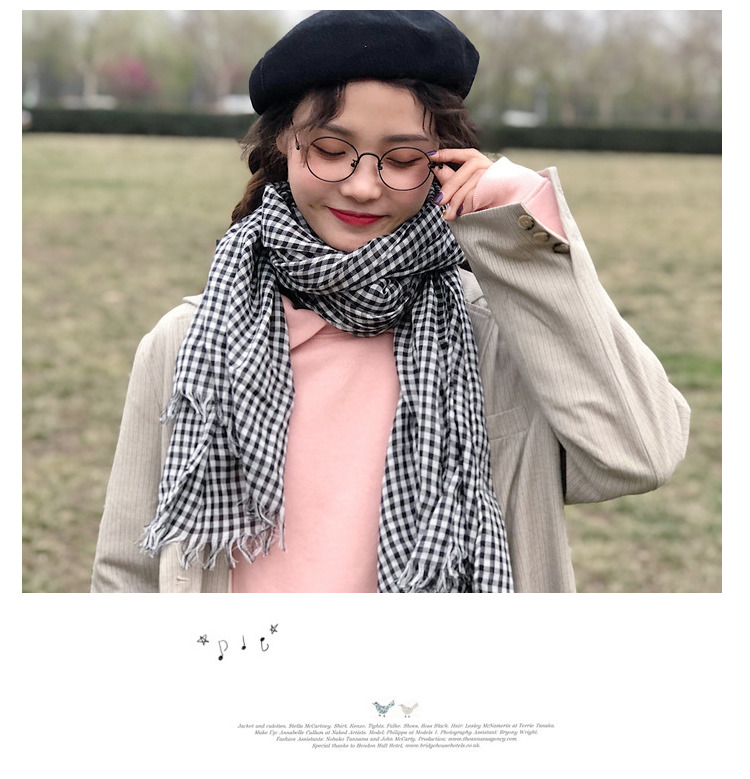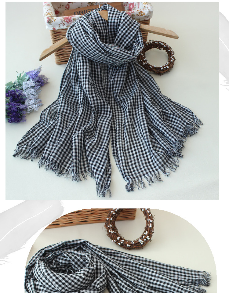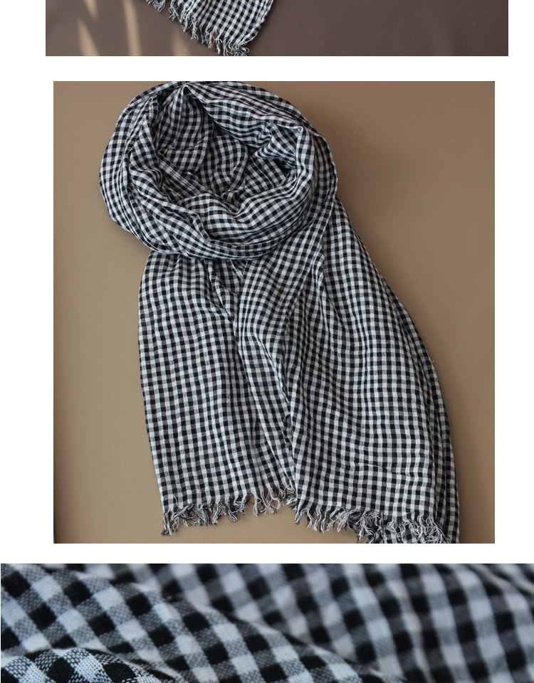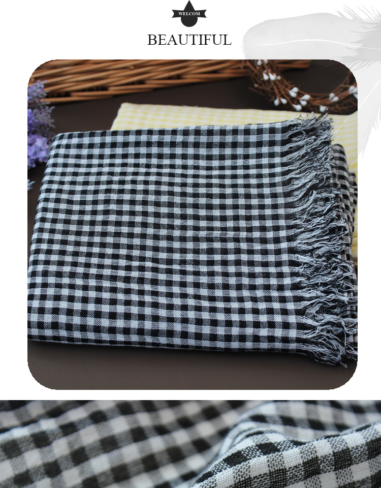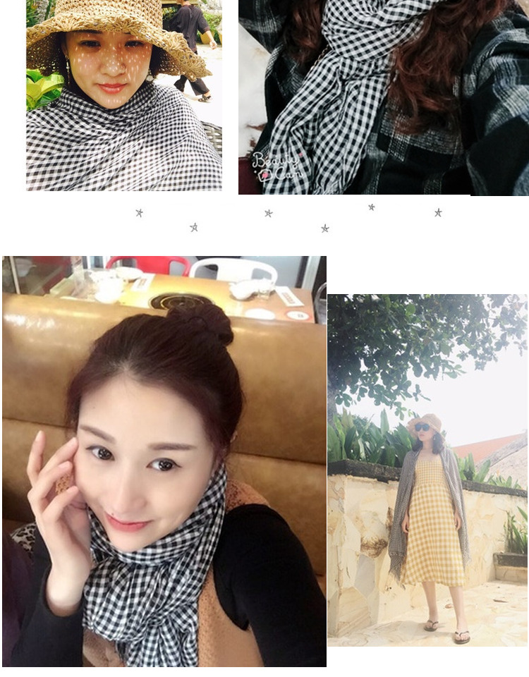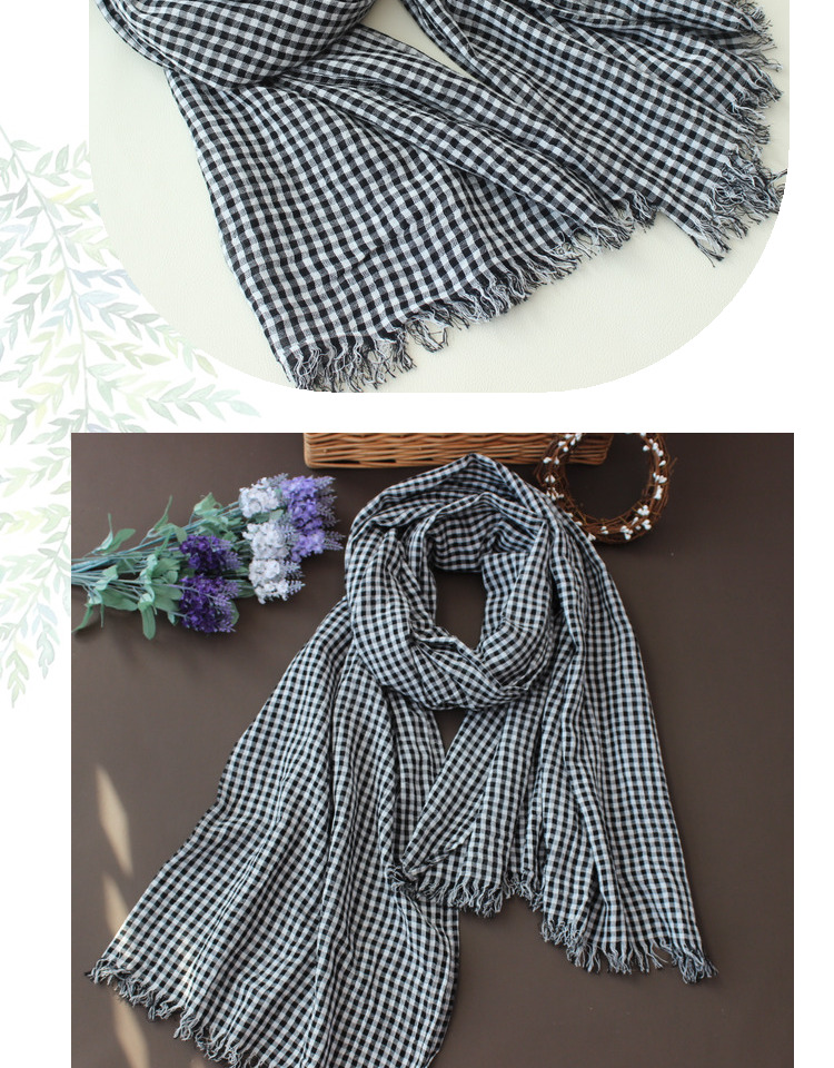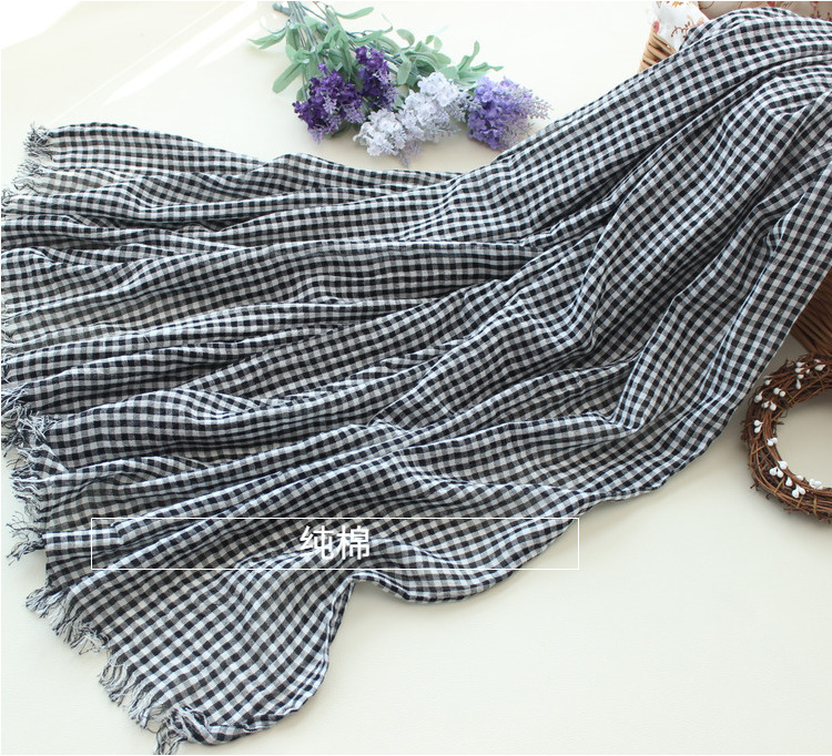 韓版小清新純棉麻圍巾黑白小格子圍巾披肩兩用女文藝春秋冬季學生1入