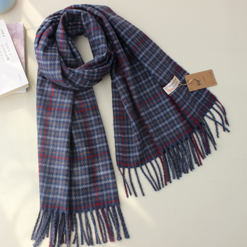青年男士圍巾春秋冬季加厚款保暖圍脖學生男女情侶圍巾仿羊絨格子1入