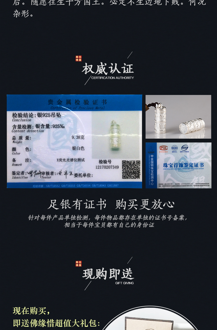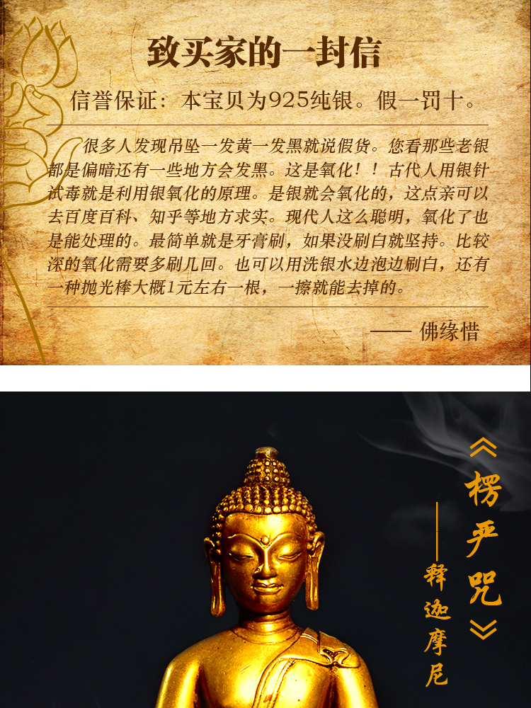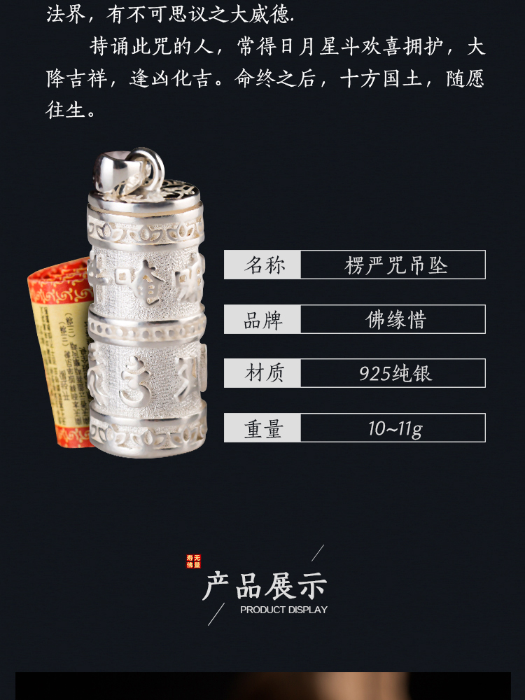 開光925純銀本命佛楞嚴咒飾品掛件護身符男辟邪項鏈女士吊墜隨身1入