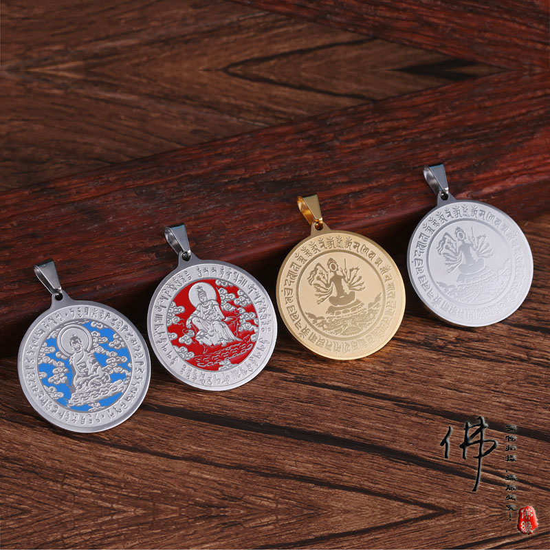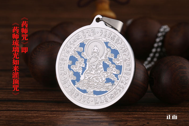 鈦鋼準提咒護身符本命佛觀音菩薩心經吊牌藍藥師佛牌守護神吊墜1入