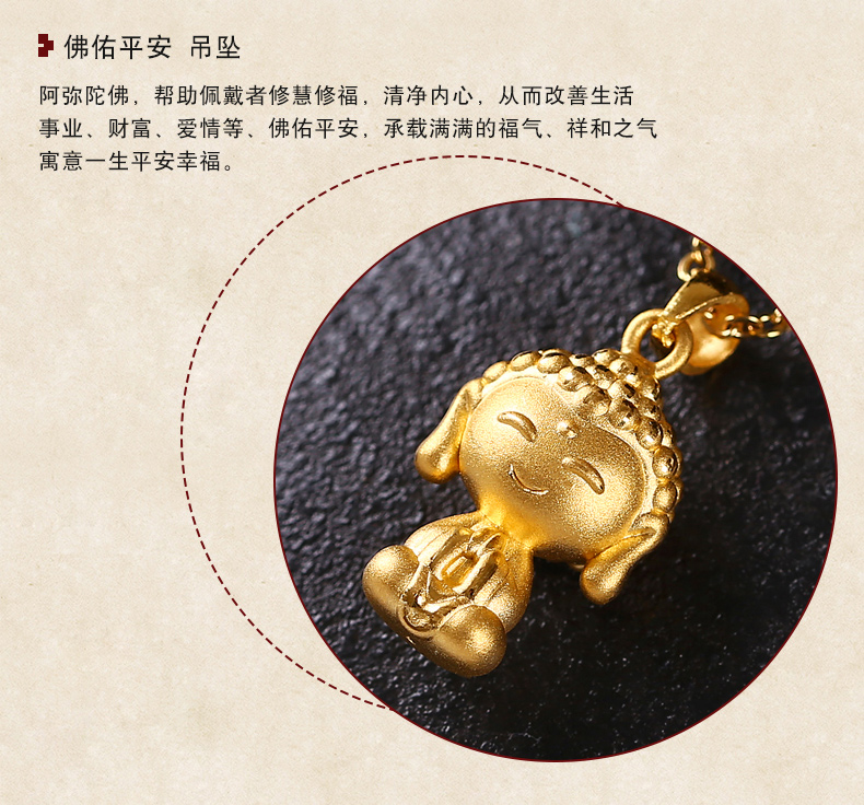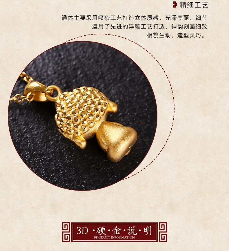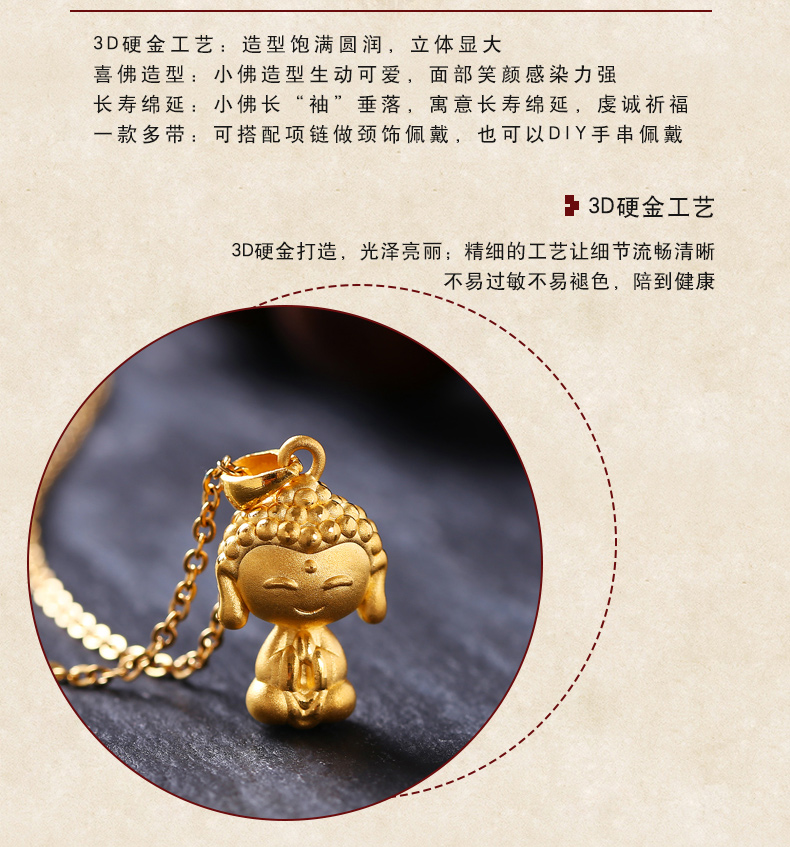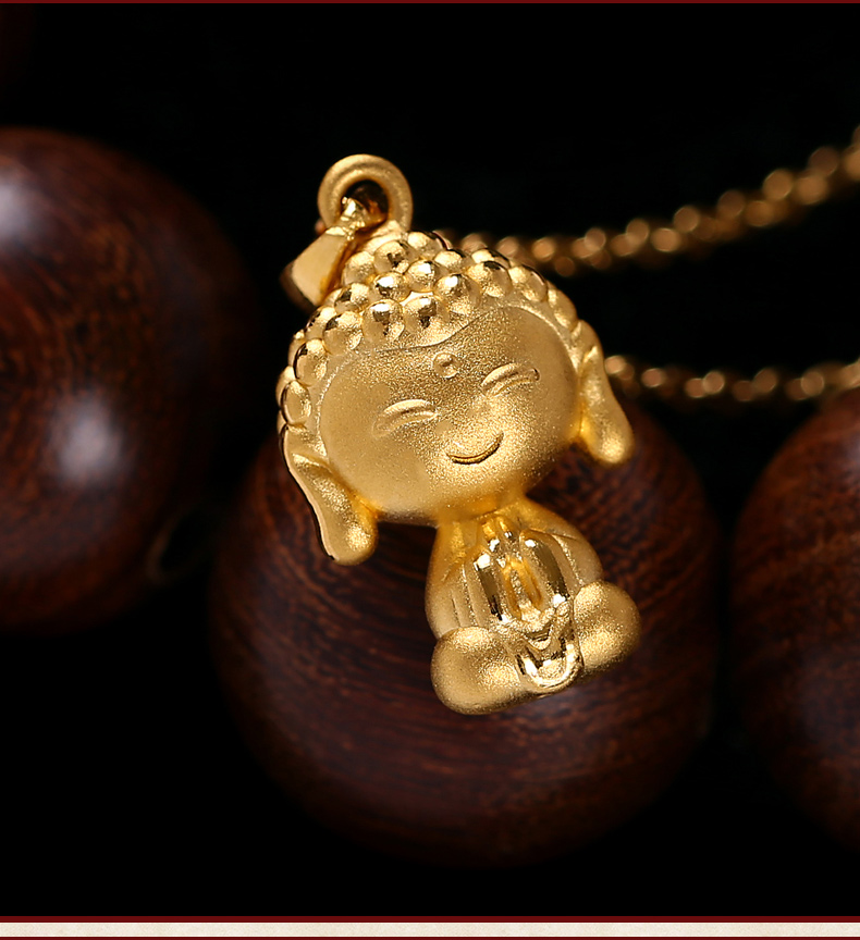 開光999千足3D硬金小佛吊墜辟邪隨身男女情侶黃金轉運守護符掛件1入