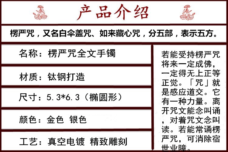 鈦鋼全文楞嚴咒手鐲全五會手環男女士情侶鐲子辟邪轉運護身符手鏈1入