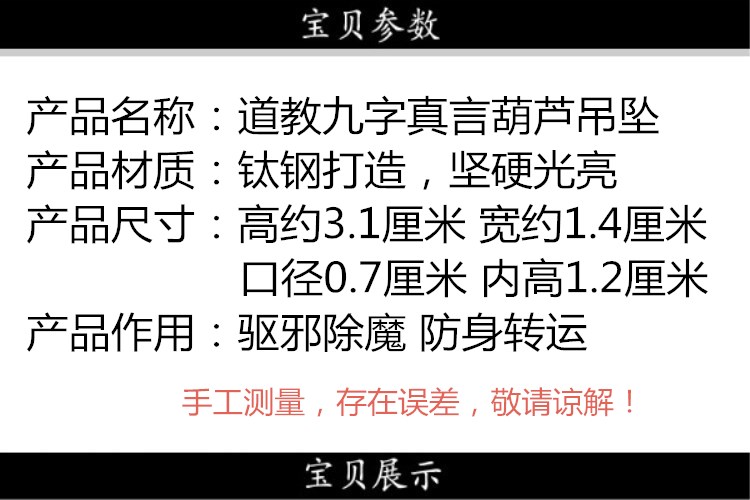 道家九字真言鈦鋼葫蘆吊墜可打開男女辟邪轉運護身符太極八卦法器1入