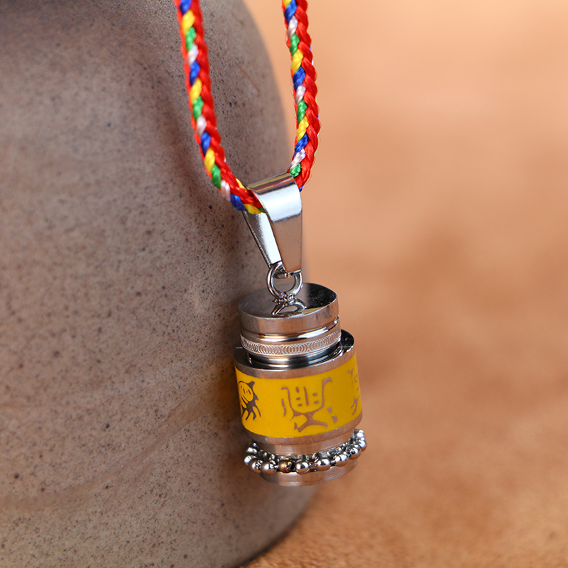 鈦鋼五岳真形轉經輪吊墜男女楞嚴咒嘎烏盒項鏈情侶護身符飾品掛件1入