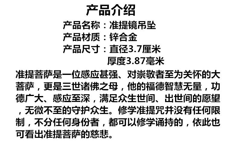 開光結緣準提鏡吊墜精致準提咒母掛件男女士護身符辟邪轉運保平安1入