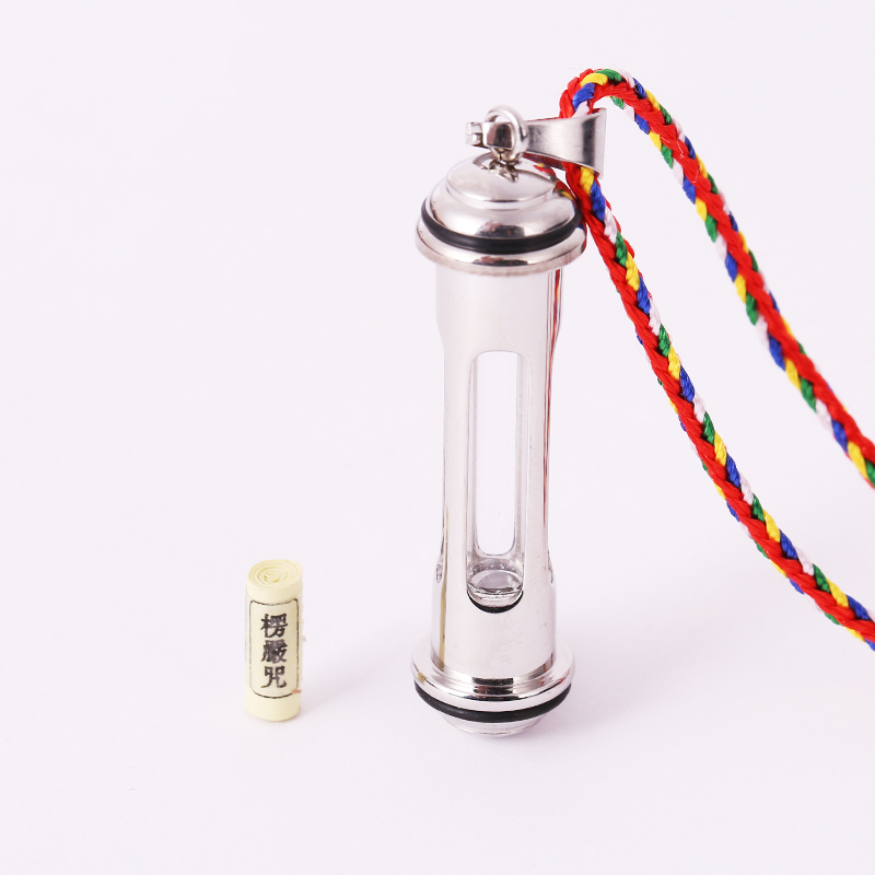 透明嘎烏盒楞嚴咒掛件舍利子裝朱砂護身符吊墜辟邪轉運保平安項鏈1入