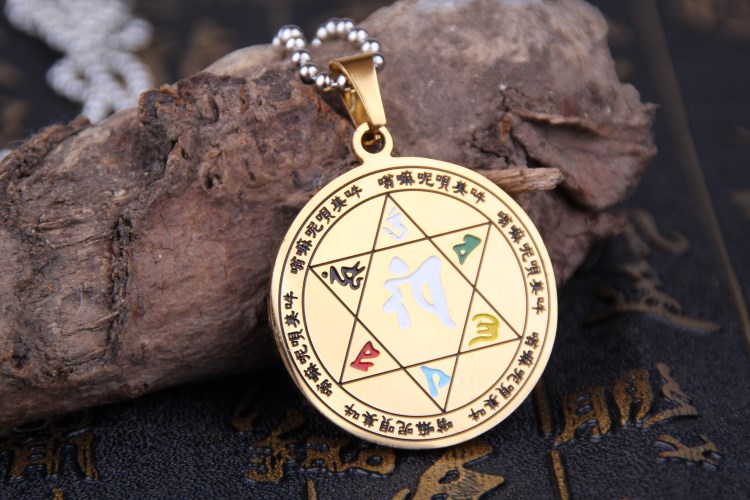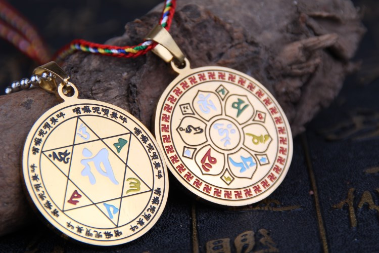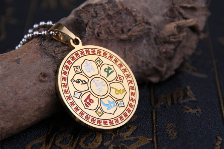 開光結緣觀音心咒六字真言佛牌楞嚴咒七彩蓮花吊墜辟邪轉運保平安1入