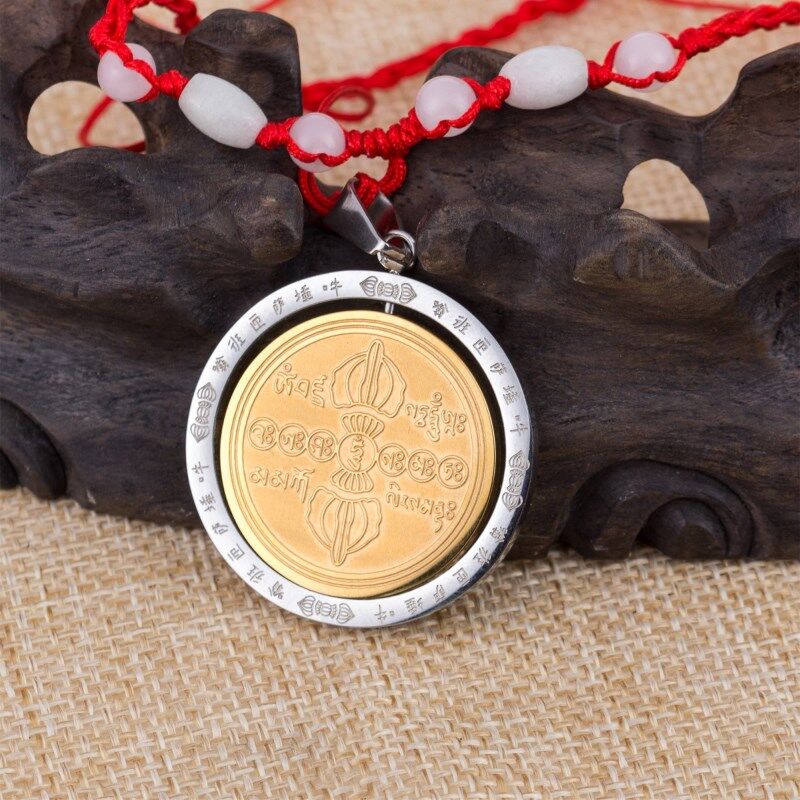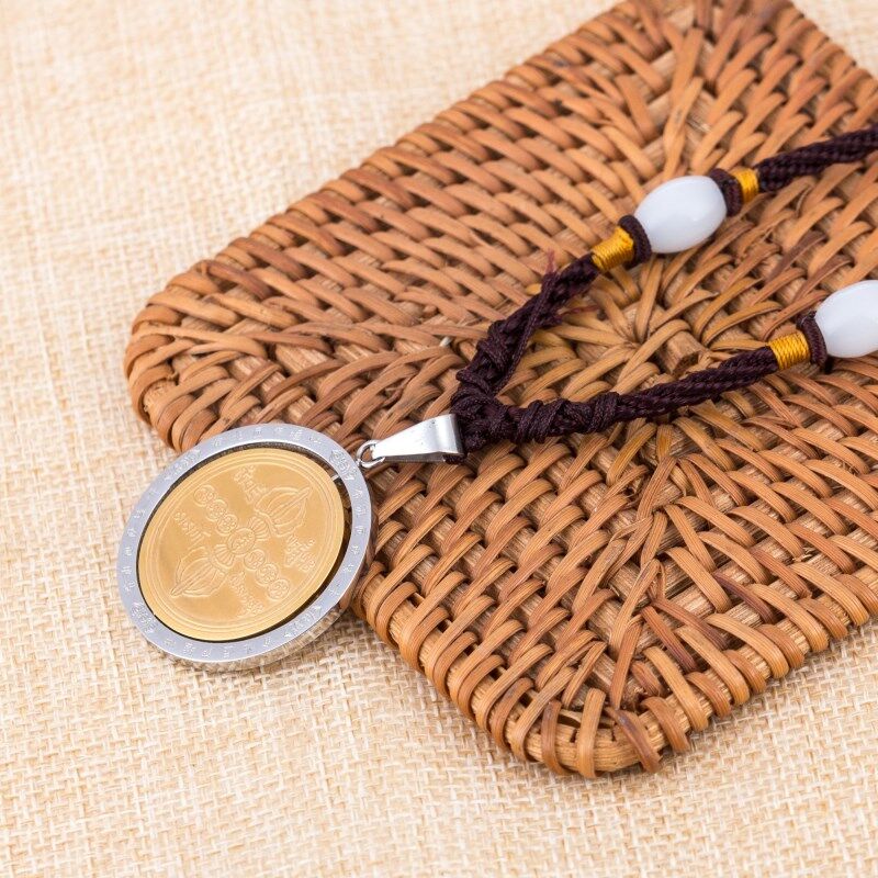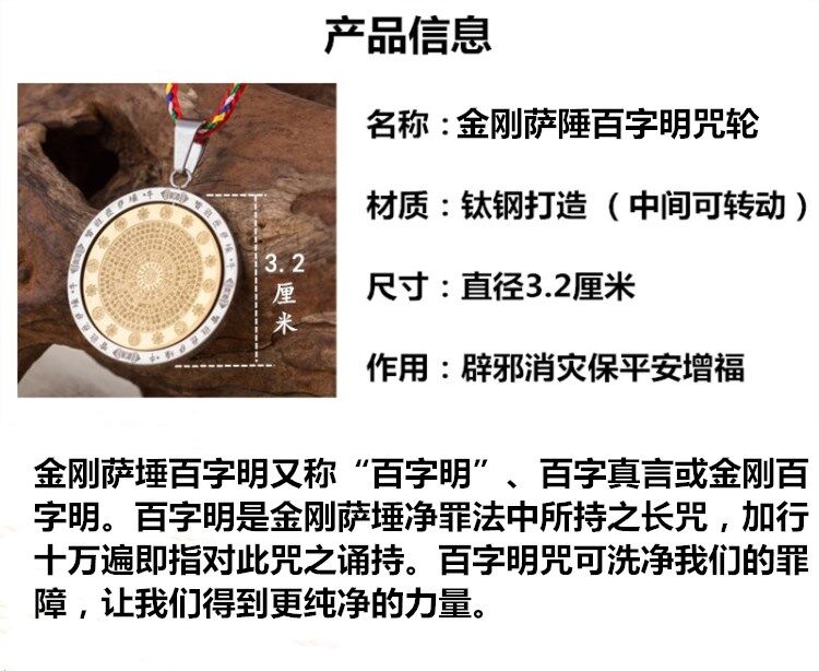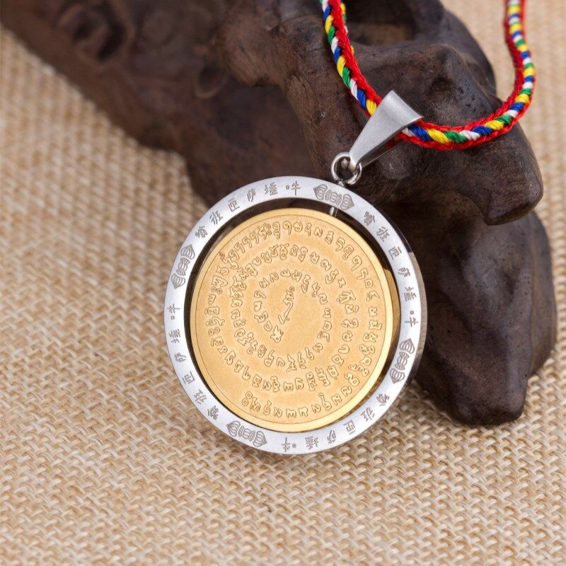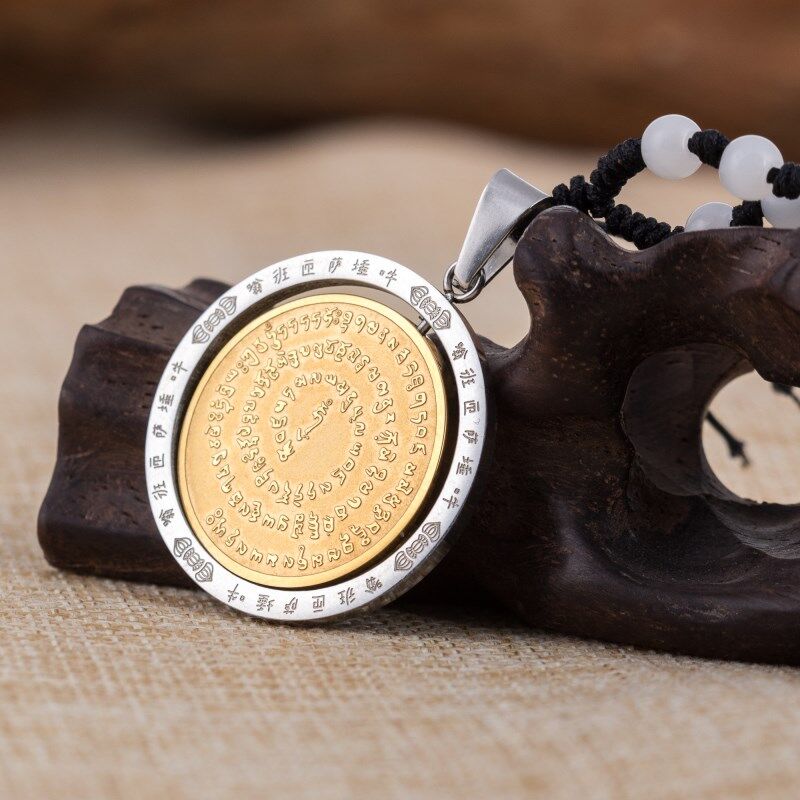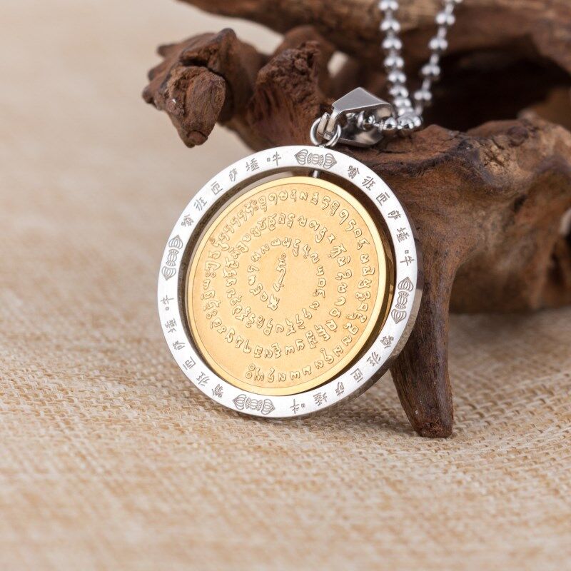 鈦鋼金剛薩埵心咒百字明咒吊墜護身符金剛杵項鏈咒輪掛件男女飾品1入