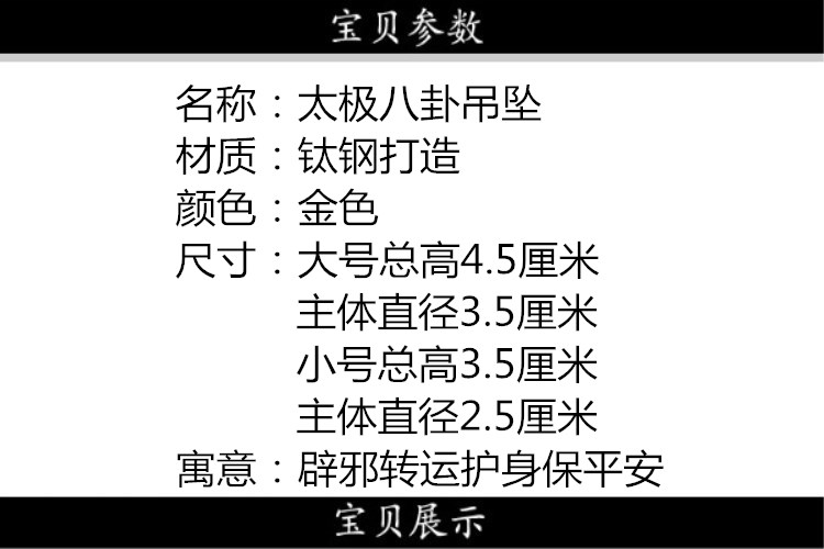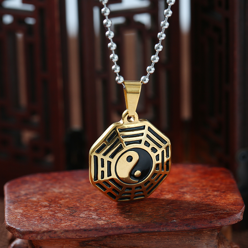 道家鈦鋼八卦吊墜陰陽太極圖護身符鎮宅辟邪男女吊墜辟邪轉運掛件1入