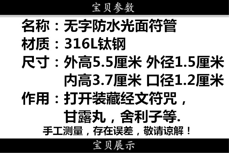 鈦鋼無字防水楞嚴咒吊墜光面圓柱嘎烏盒可打開男女項鏈護身符掛件1入