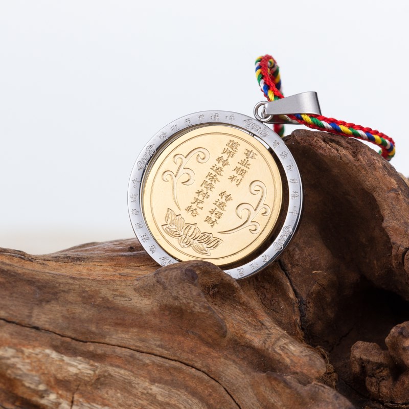 開光蓮師轉運除障神咒輪吊墜辟邪轉運招財事業順利金剛杵心咒掛件1入