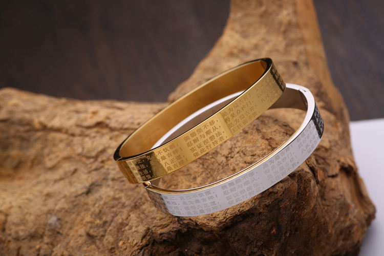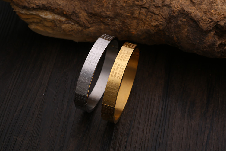 開光結緣佛教佛說吉祥經鈦鋼手鐲男女士情侶手鐲復古飾品鐲子手環1入