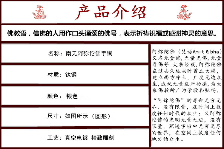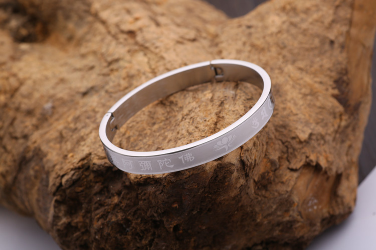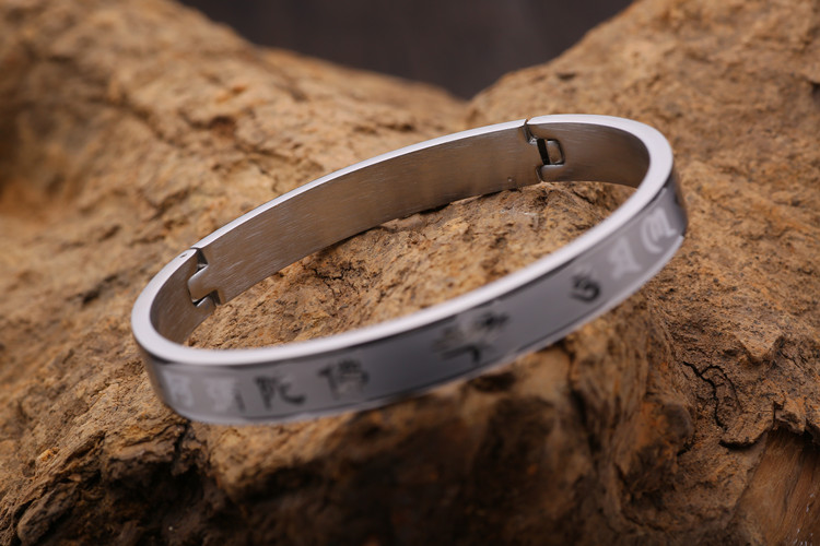 鈦金手鐲開光心經大悲咒楞嚴咒六字真言男女款情侶時尚手環保平安1入