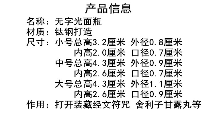 開光結緣鈦鋼無字光面防水柱形楞嚴咒吊墜男女項鏈掛件裝藏舍利子1入