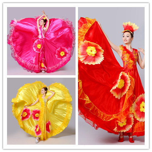開場舞演出服大擺裙女成人花朵連衣裙夏大氣歌伴舞合唱現代舞蹈裝1入